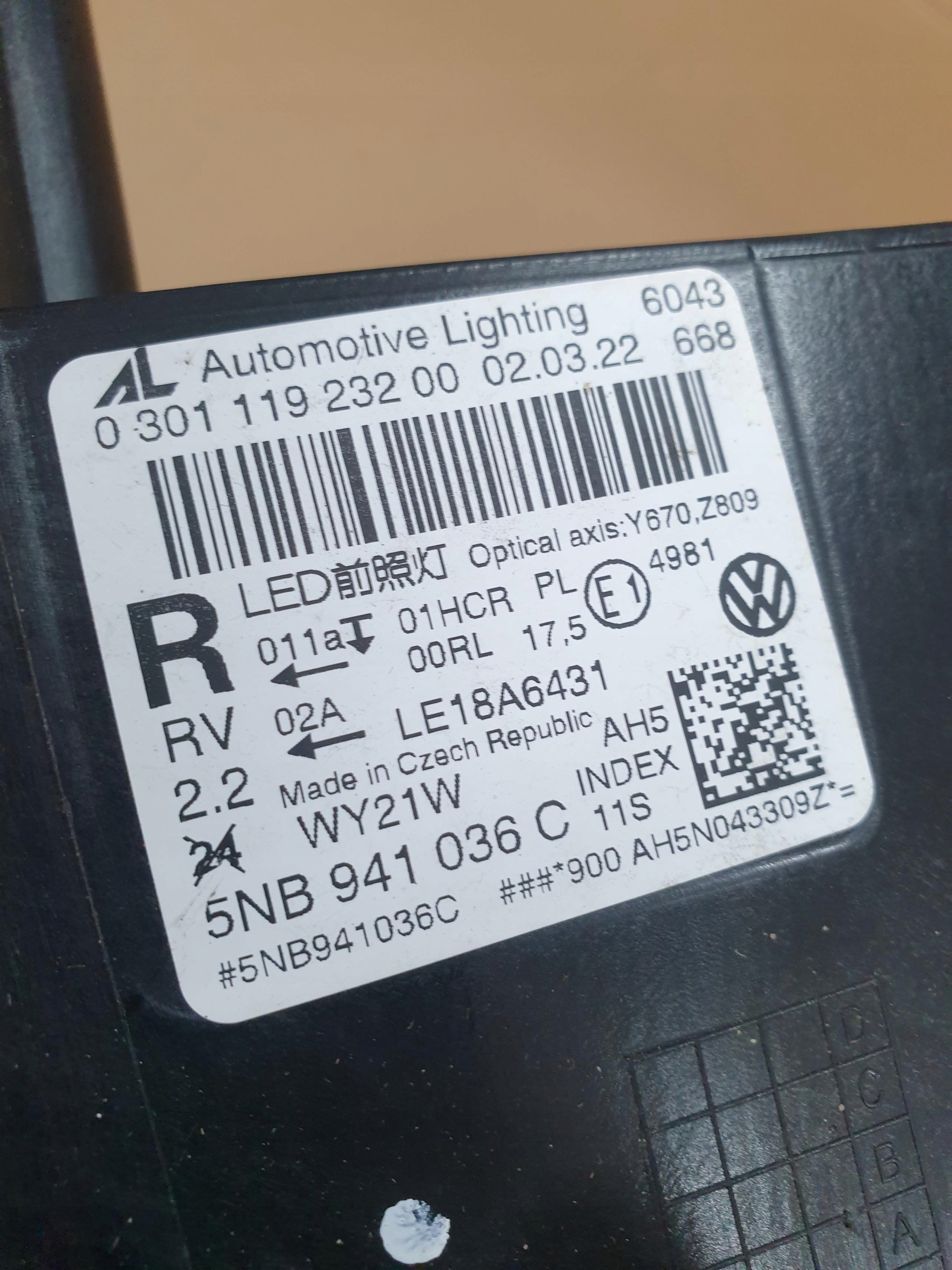 Volkswagen tiguan ii лампа права перед 5nb941036c