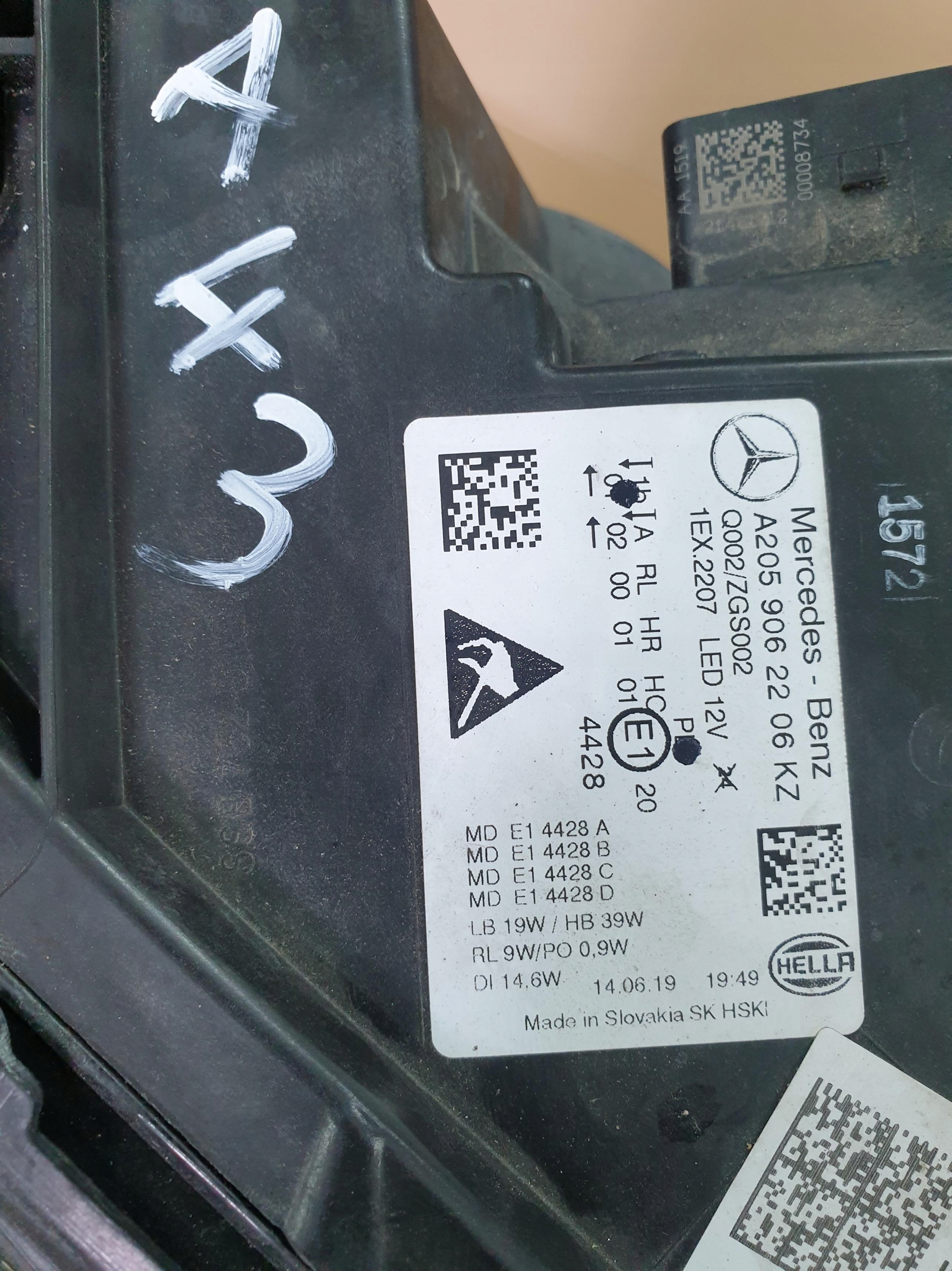 Mercedes w205 14- лампа права перед a2059062206kz
