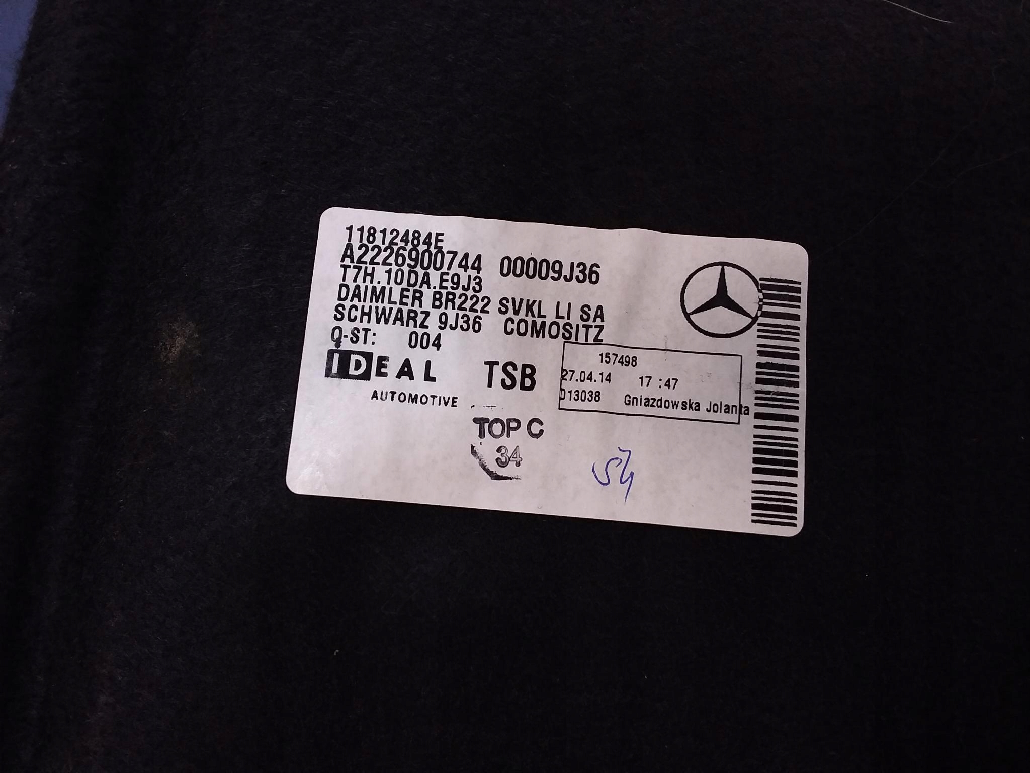 Mercedes s w222 оббивка обшивка багажника лівий