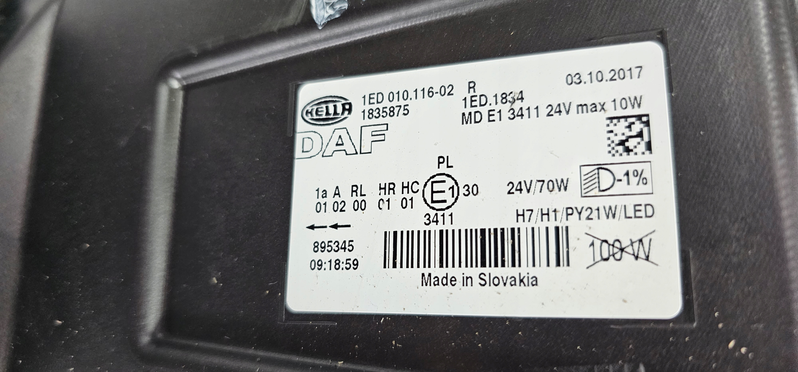 Daf xf 106 лампа перед передня права звичайна fv