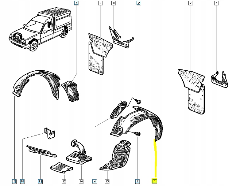 Підкрилок лівий перед renault express оригінальний номер 7700761602