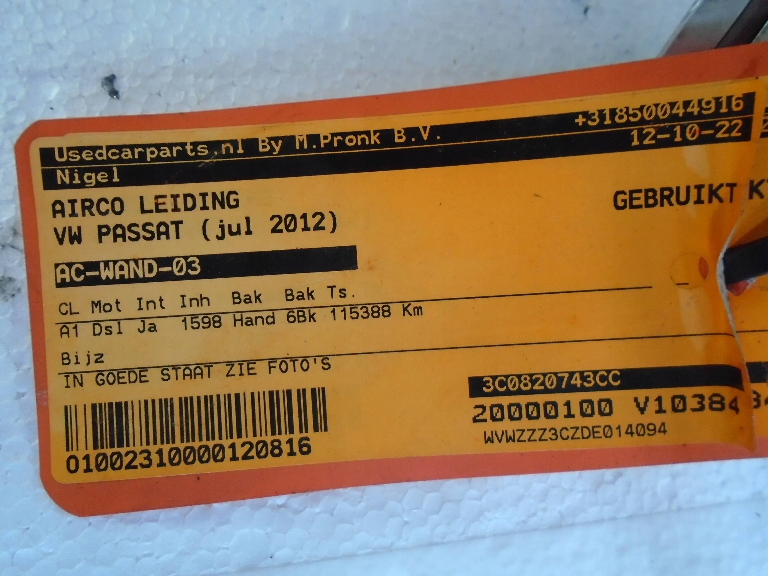 Шланг кондиціонера 3c0820743cc vw passat b7