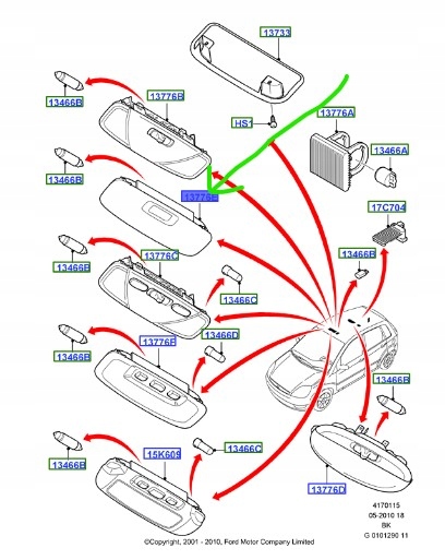 Лампа освітлення салону ford fiesta mk6 fusion