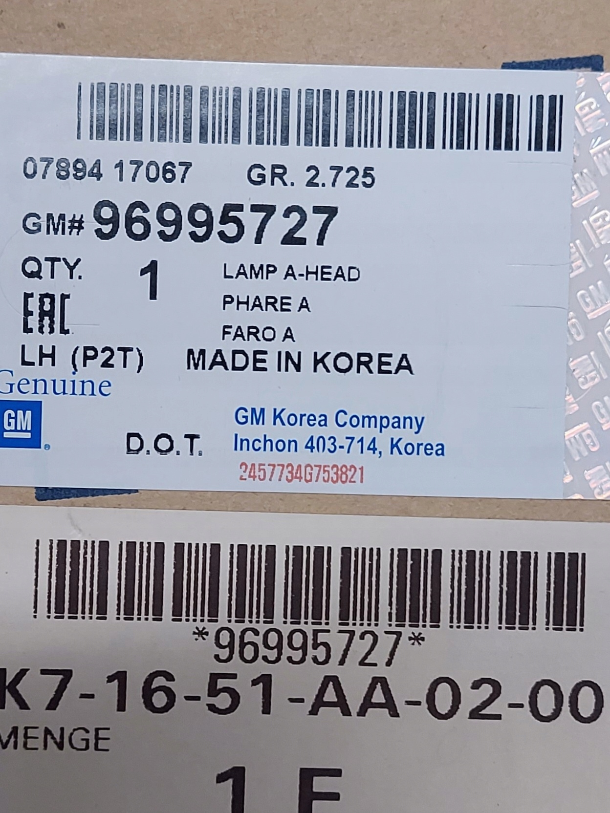 Фара chevrolet оригінальний номер 96995727 chevrolet aveot255