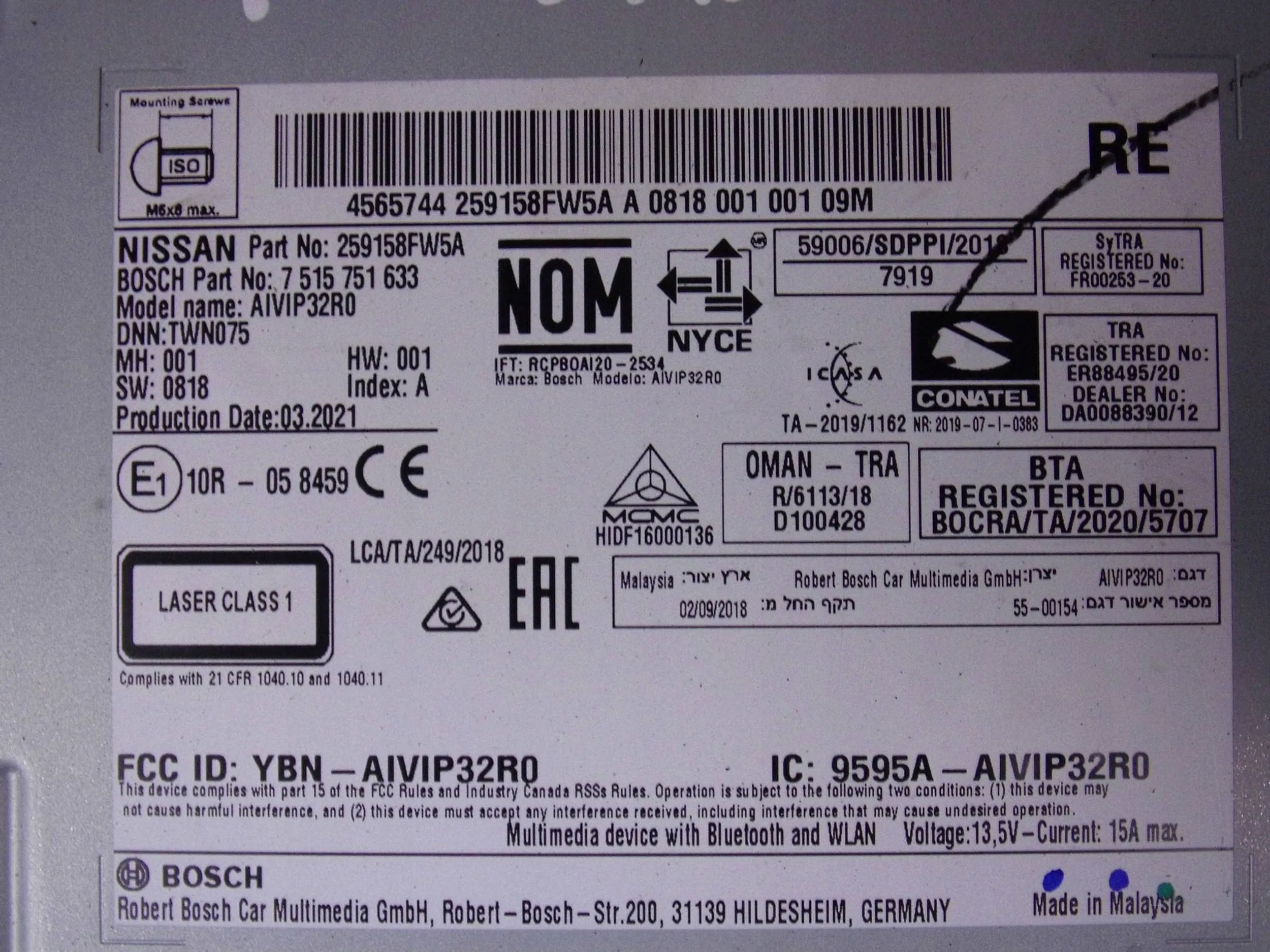 | Каталожний номер деталі: | 259158FW5A |