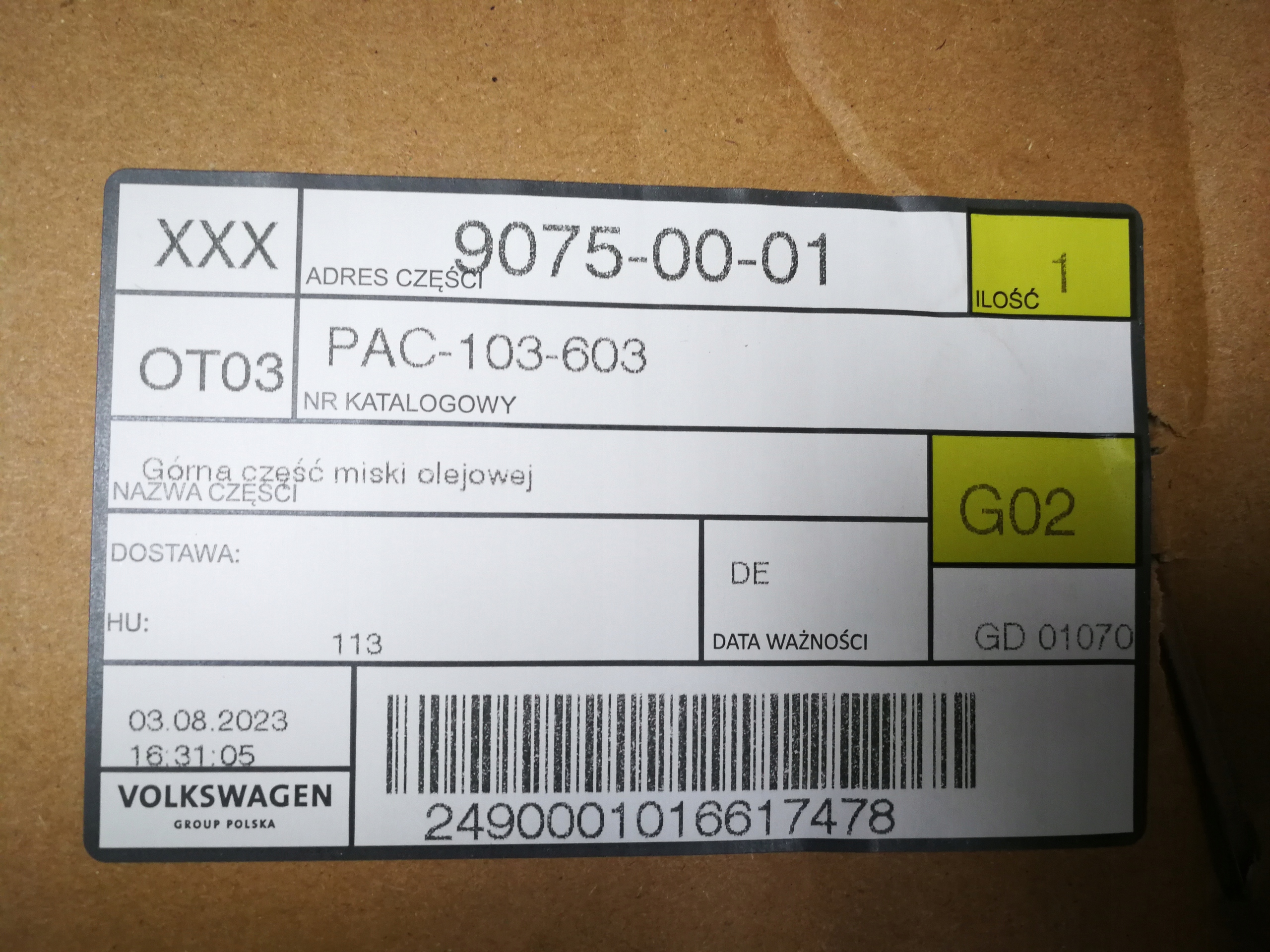 | Якість частини відповідно з gvo: | o - оригінал з logo виробник транспортного засобу оригінальний номер |