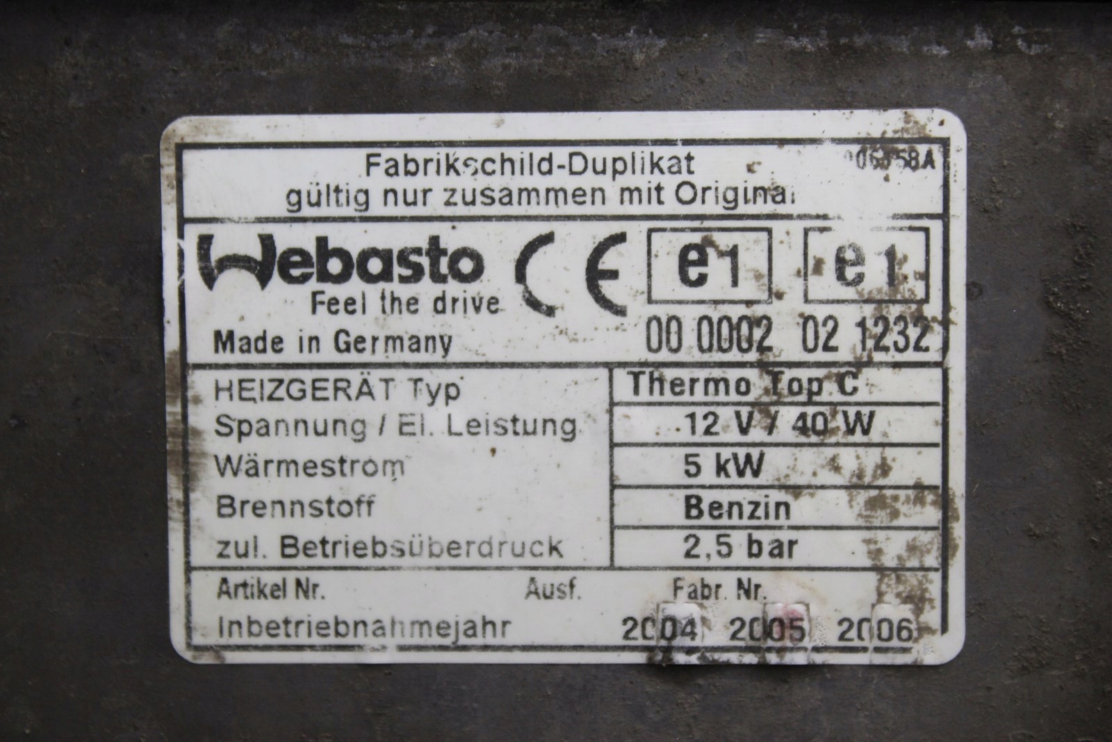 Webasto vw phaeton 3d0815005s 12 v/40 w thermo top c 000002021232