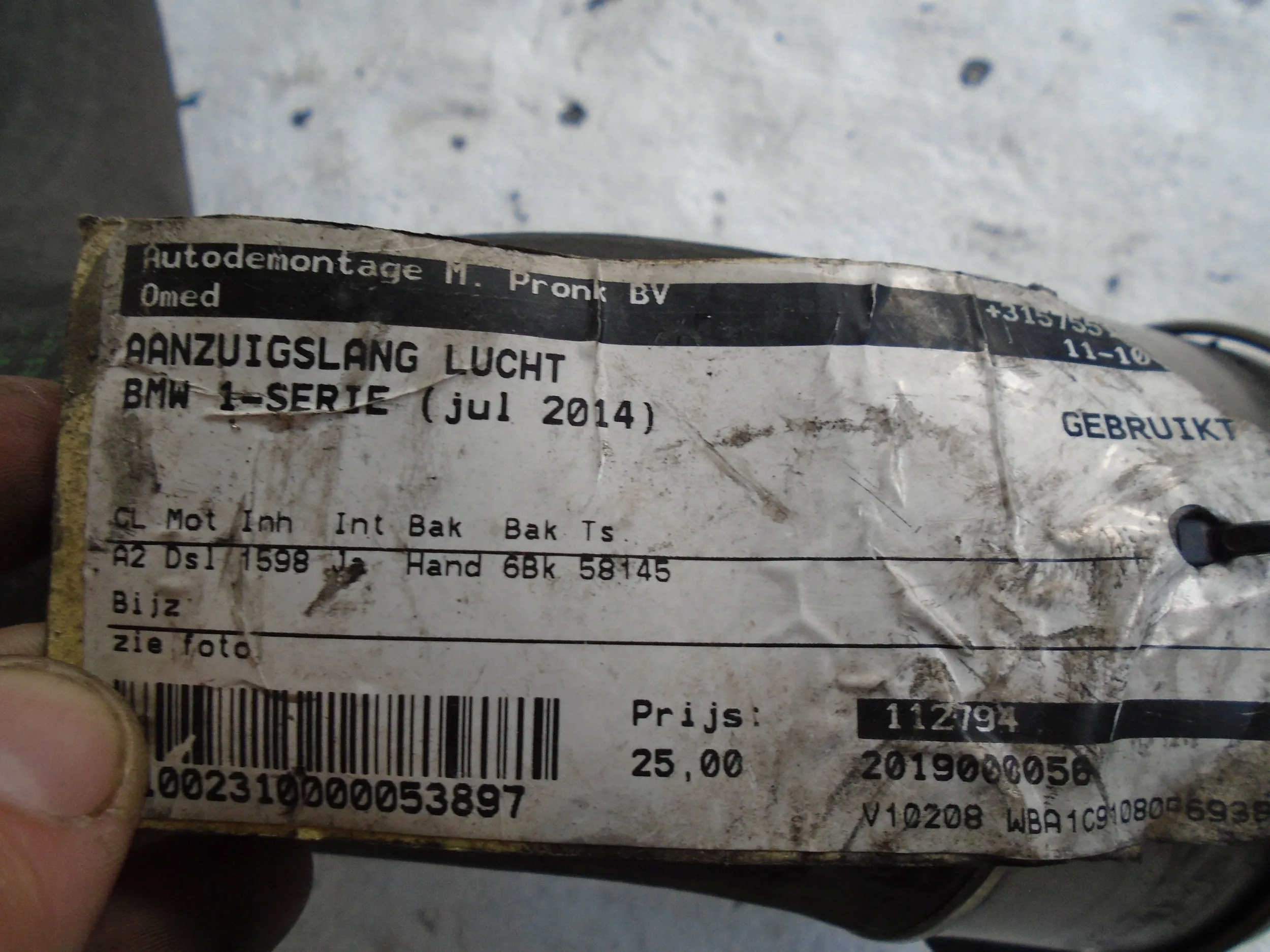 Труба шланг повітря 112794 bmw 1 e81 e87