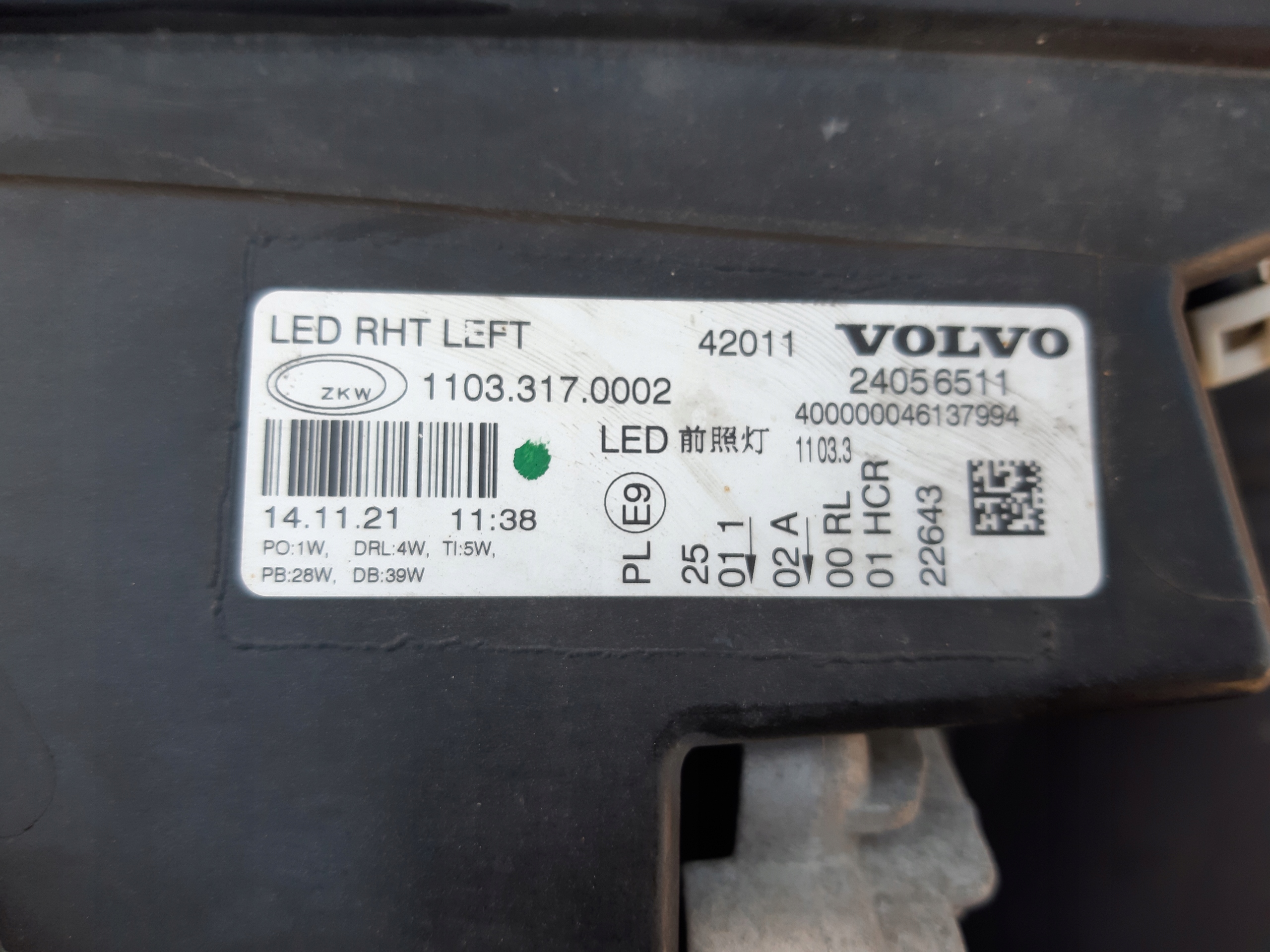 Volvo fh5 фара лівий full led лампа оригінал 24056511