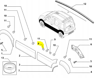 Кліпса кронштейн накладки двері лівий задня fiat panda оригінальний номер 46558337