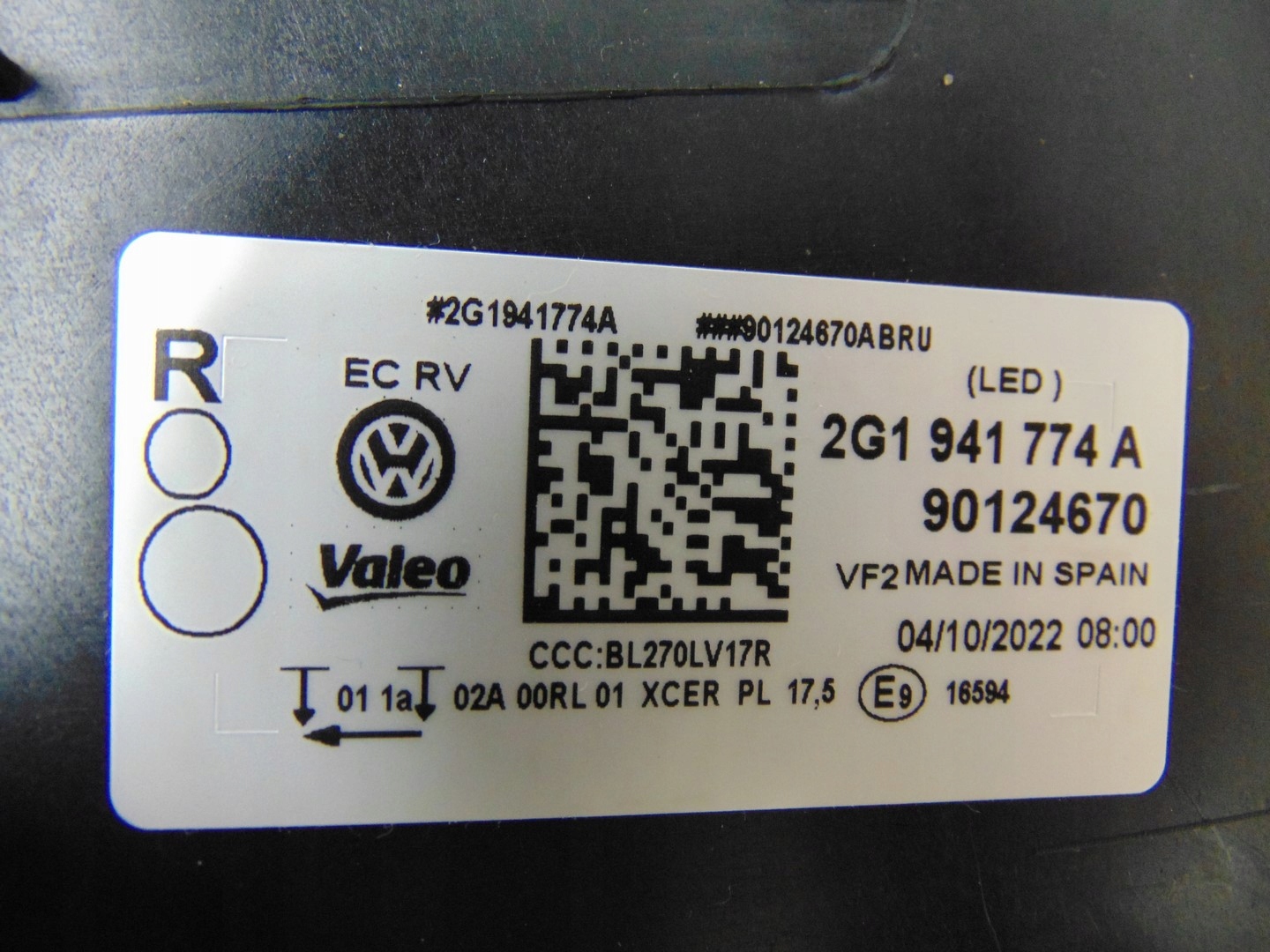 Лампа права vw polo gti 2g 2g1941774a led europa