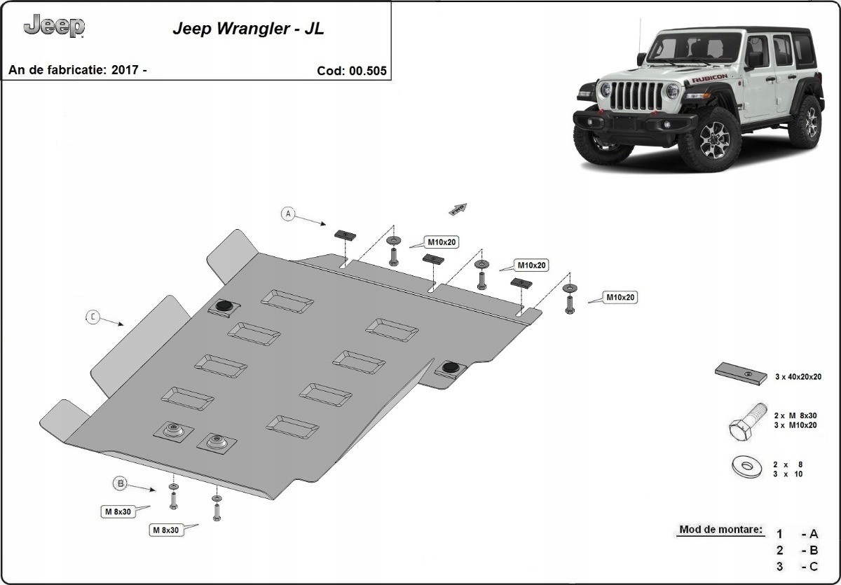 Набір захист: двигуна + коробки передач jeep wrangler jl 2017-2024