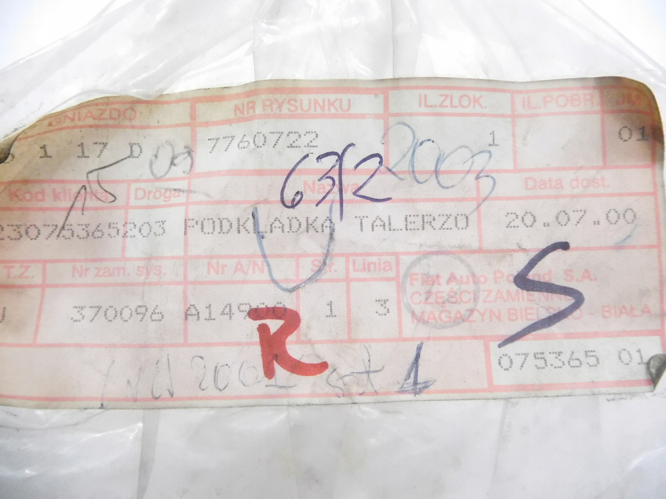 Підкладка клапана fiat punto оригінальний номер 7760722