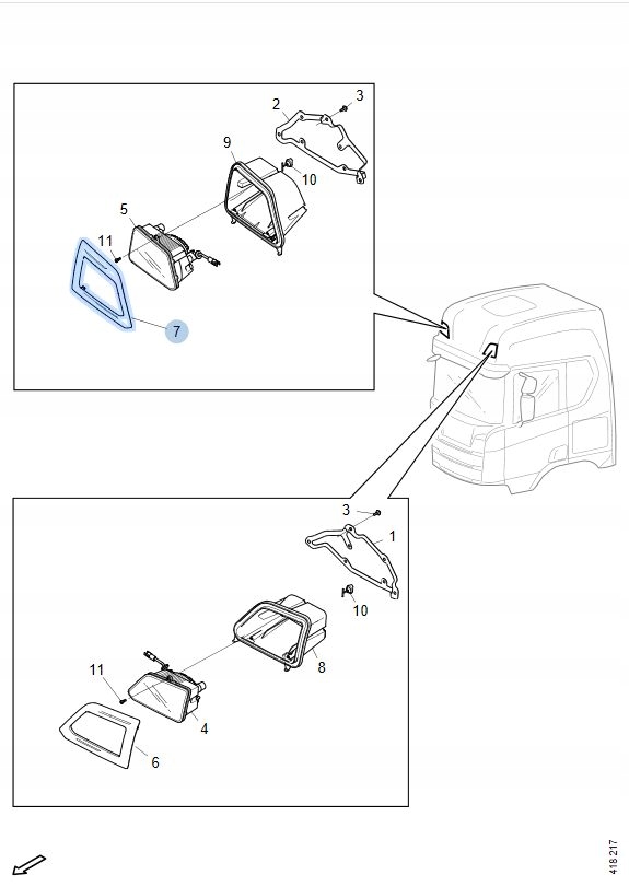 Рамка корпус протитуманної фари даховий niski права scania ngs r s p g 2549378 b-b