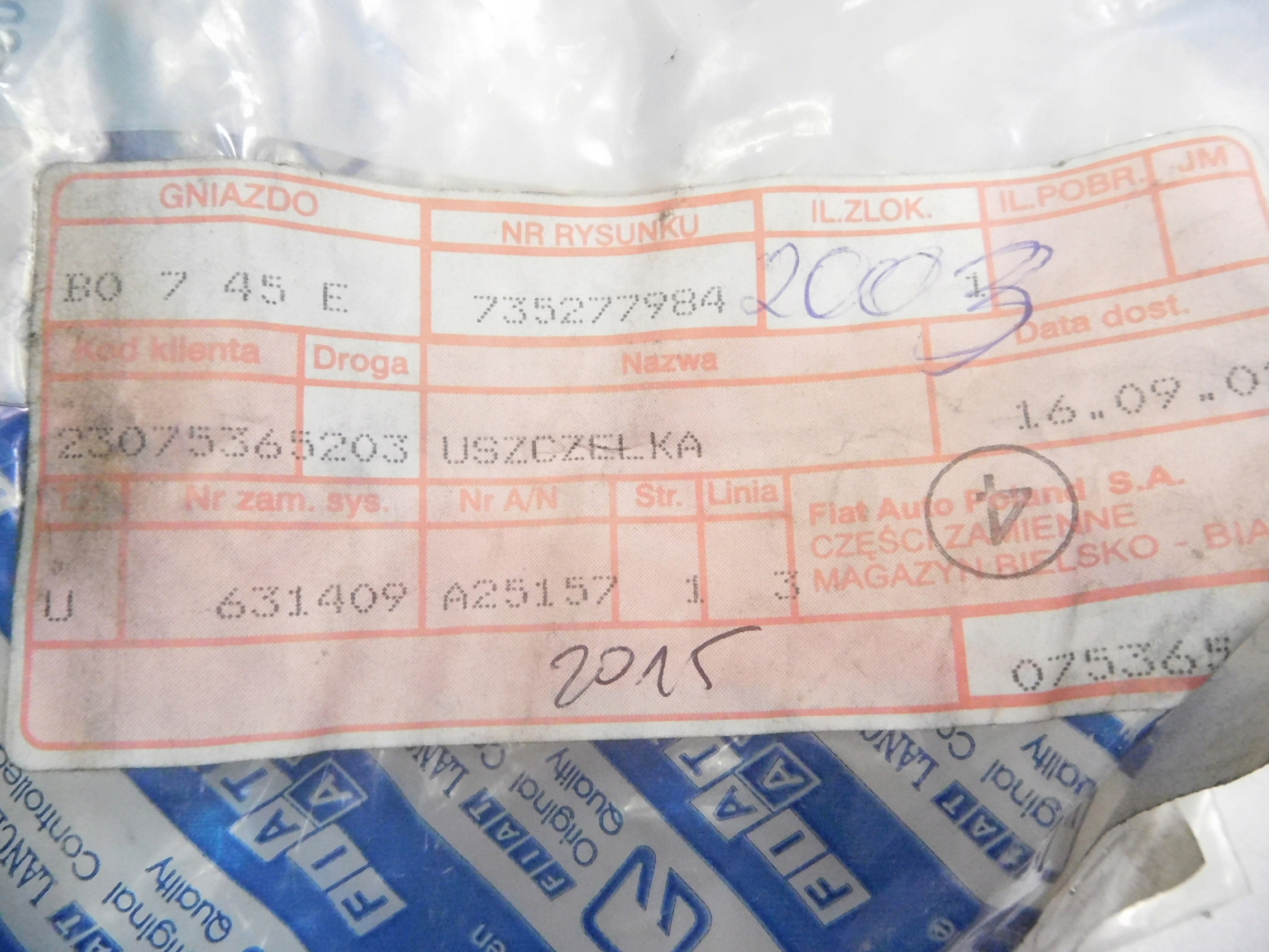 Прокладка двері fiat punto оригінальний номер 735277984