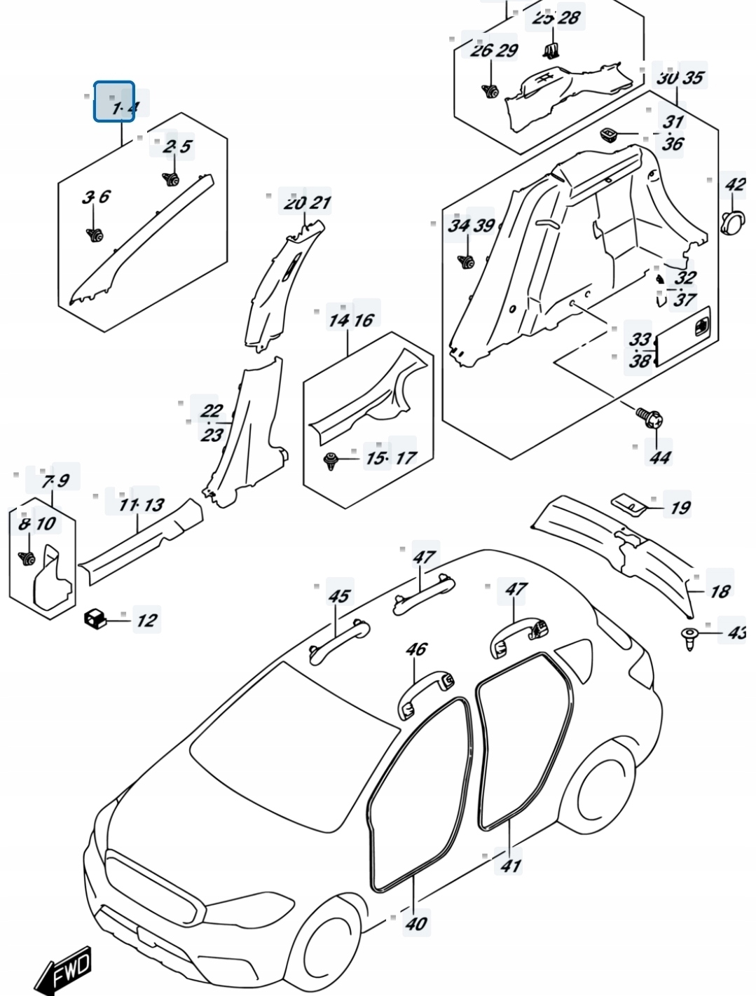 Suzuki sx4 s-cross 18r 1.4t lift захист обшивка стійка a правий перед