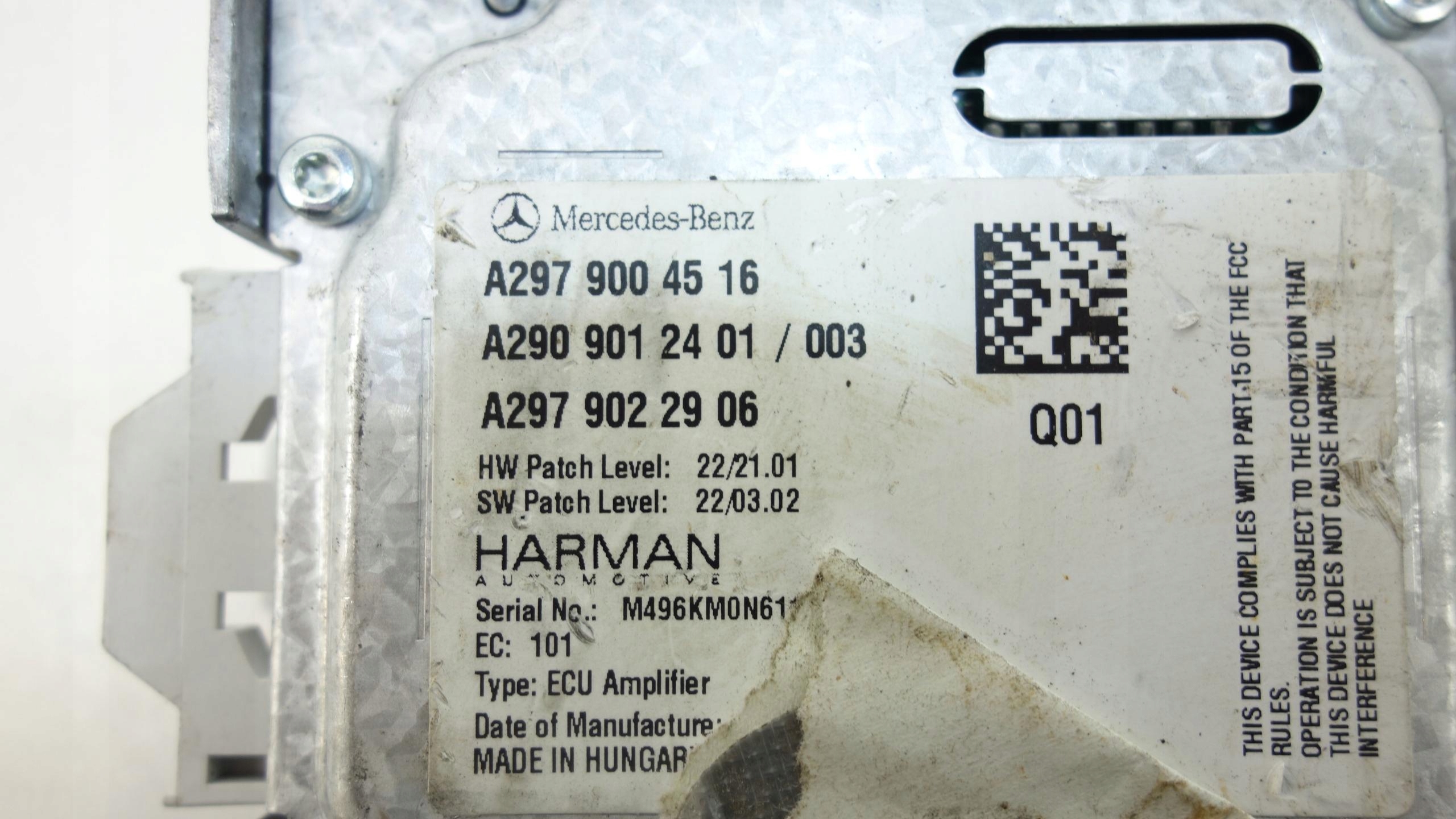 | Каталожний номер деталі: | WZMACNIACZ, HARMAN, MERCEDES, EQS, V297, 2021-, A2979004516 |