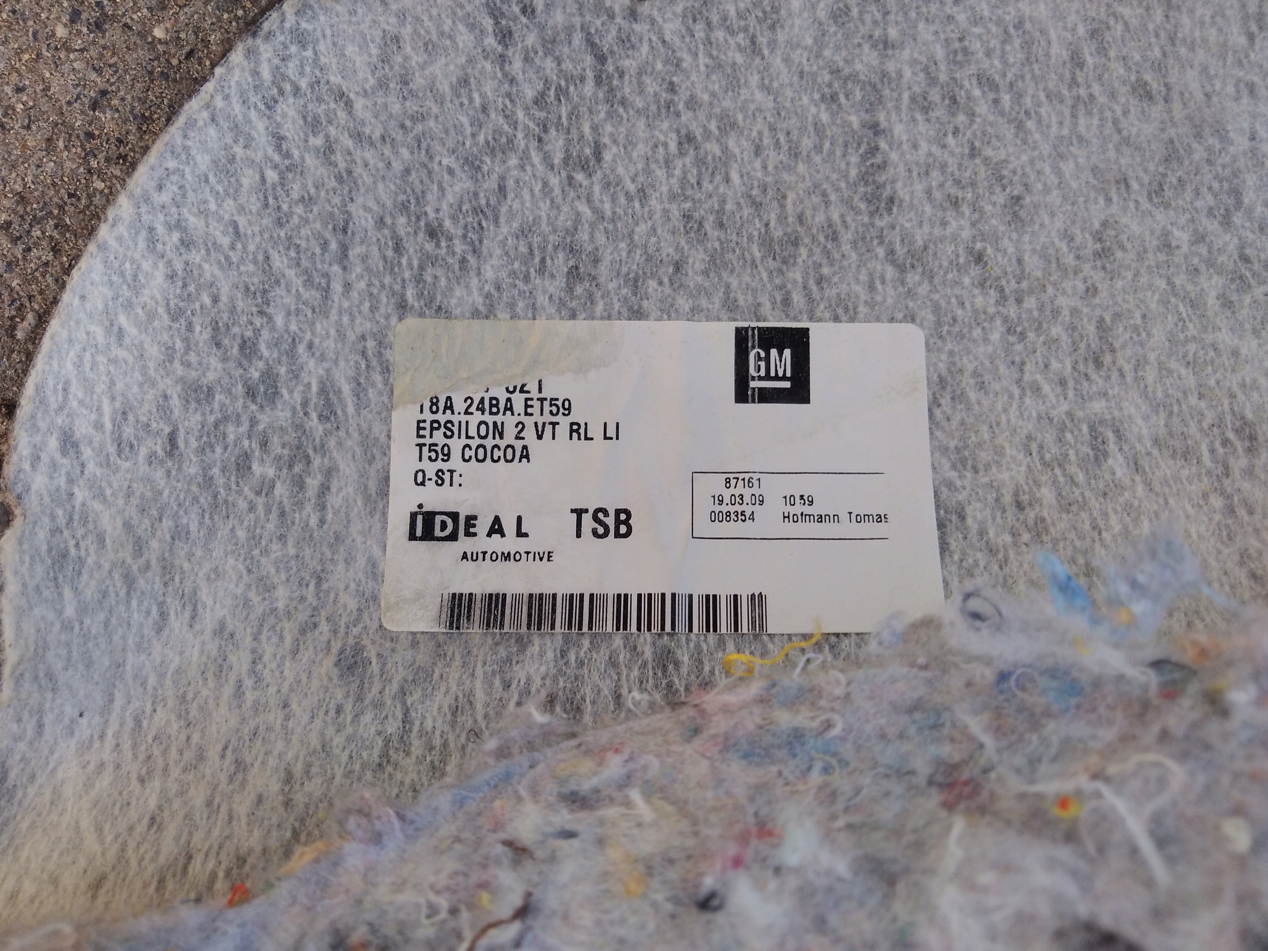 Opel insignia a килимок обшивка лівий перед підлога передня