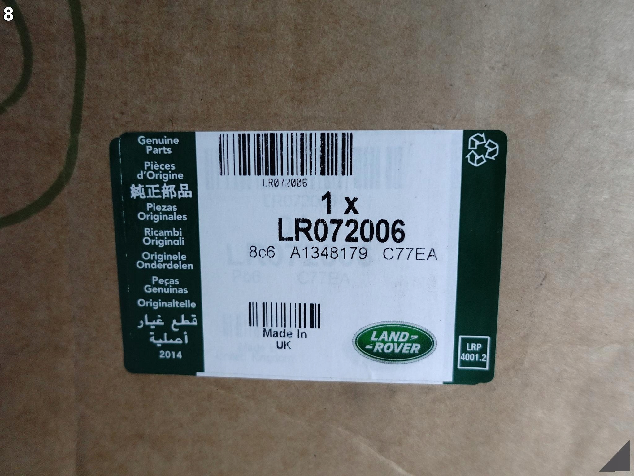 | Каталожний номер деталі: | LR072006 |