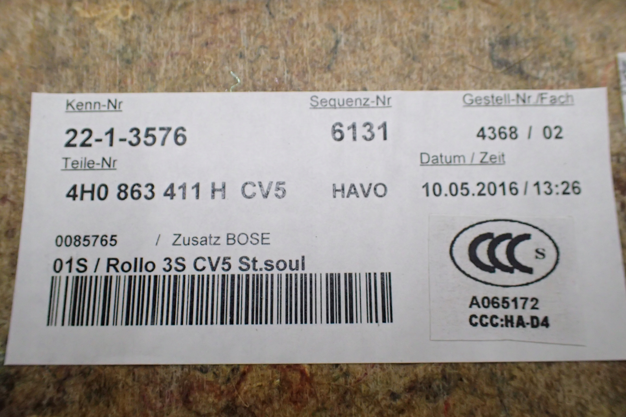 | Каталожний номер деталі: | 4H0863411H, , /P1/137 |