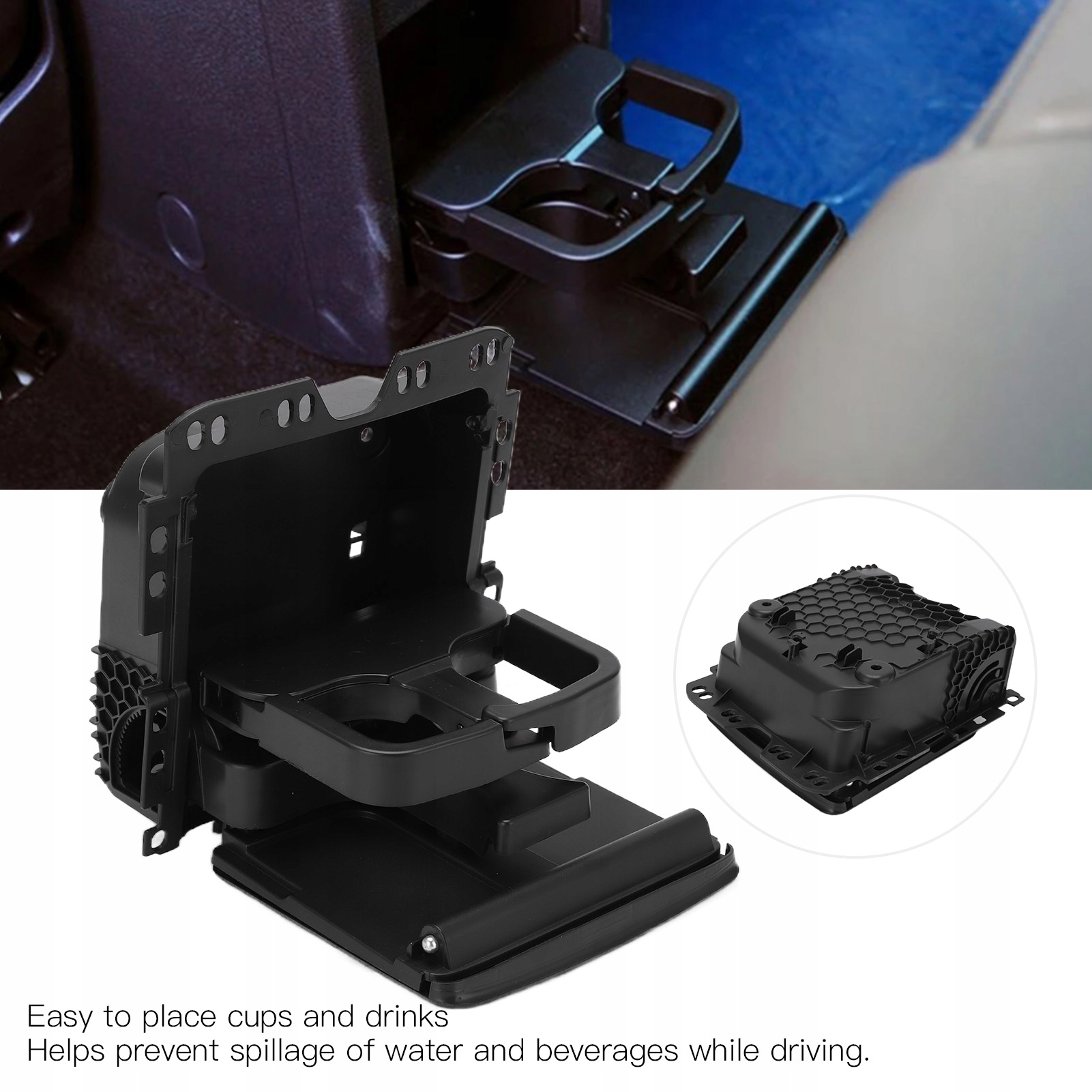 Чорний кронштейн na напої w заднім підлокітнику.
