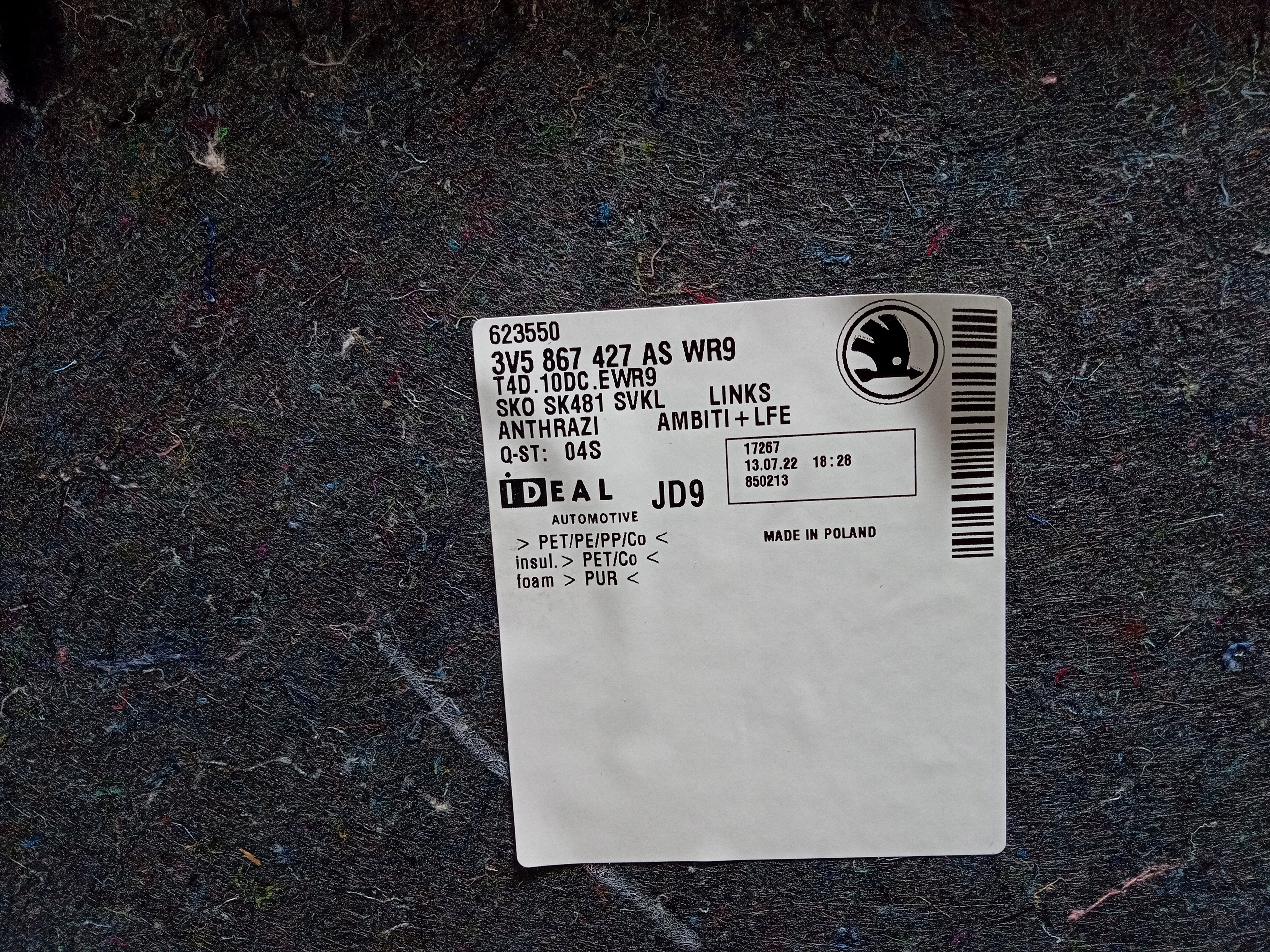 Skoda superb iii sedan оббивка багажника ліва