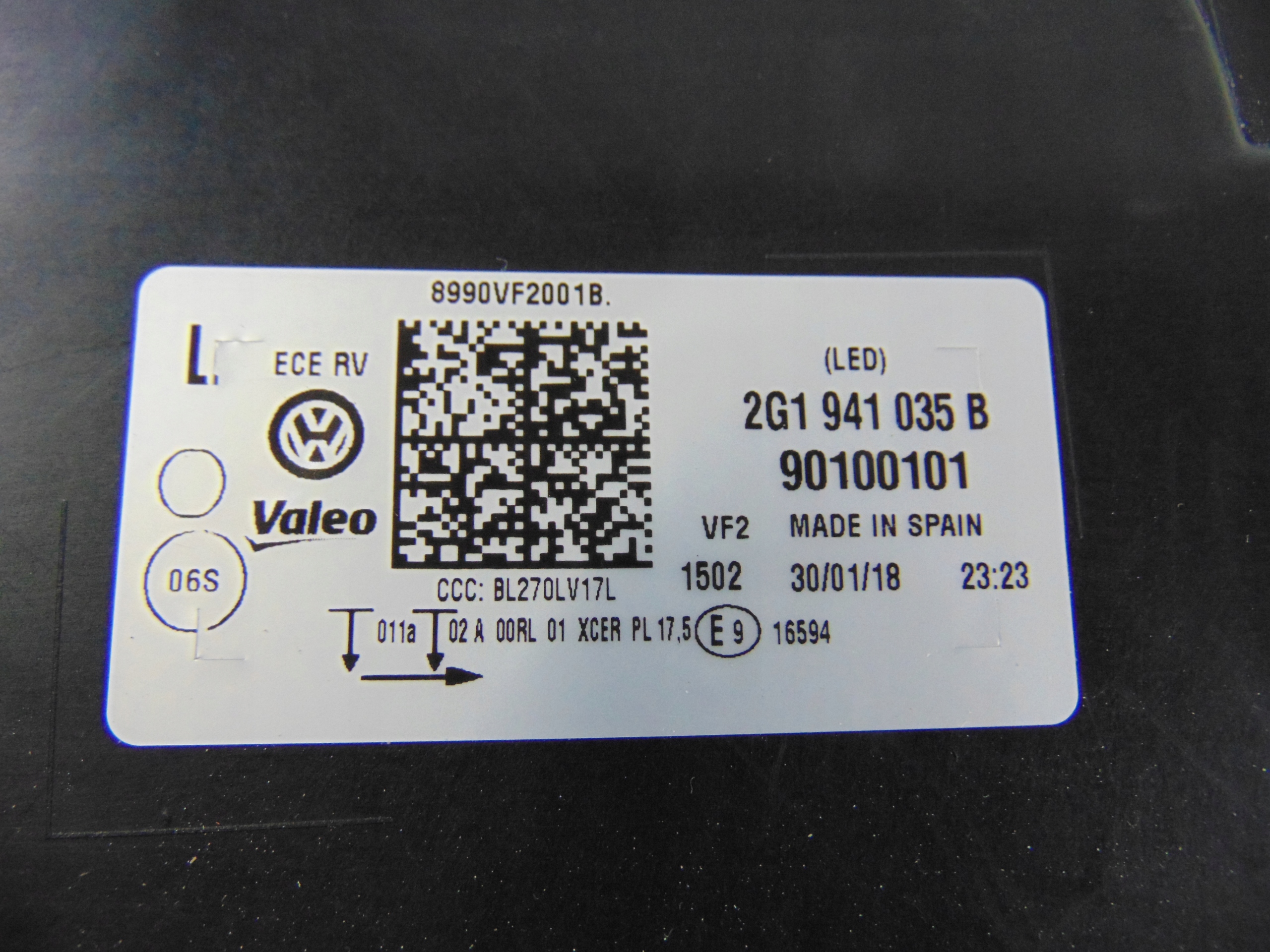 Лампа лівий перед full led vw polo vi 2g1941035b