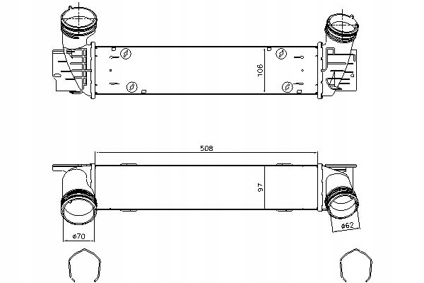 | Каталожні номери замінників: | AHE 704.021, AKS DASIS 057034N, AUTOGAMMA 107405, BBR Automotive 001-10-26537, BSG BSG 15-535-012, DIEDERICHS DCA1113, EACLIMA 36A07034, JDEUS 805M76A, KALE OTO RADYATÖR 344820, MAGNETI MARELLI 351319205460, MAHLE CI 491 000S, NRF 30907A, PRASCO BM024N002, TRUCKTEC AUTOMOTIVE 08.40.113, VALEO 818594, VAN WEZEL 06004538, WILMINK GROUP WG1724149, WILMINK GROUP WG2208219 |