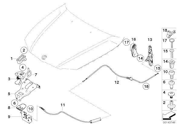 Bmw оригінальний номер 51237060529 трос капот кришка двигуна задня