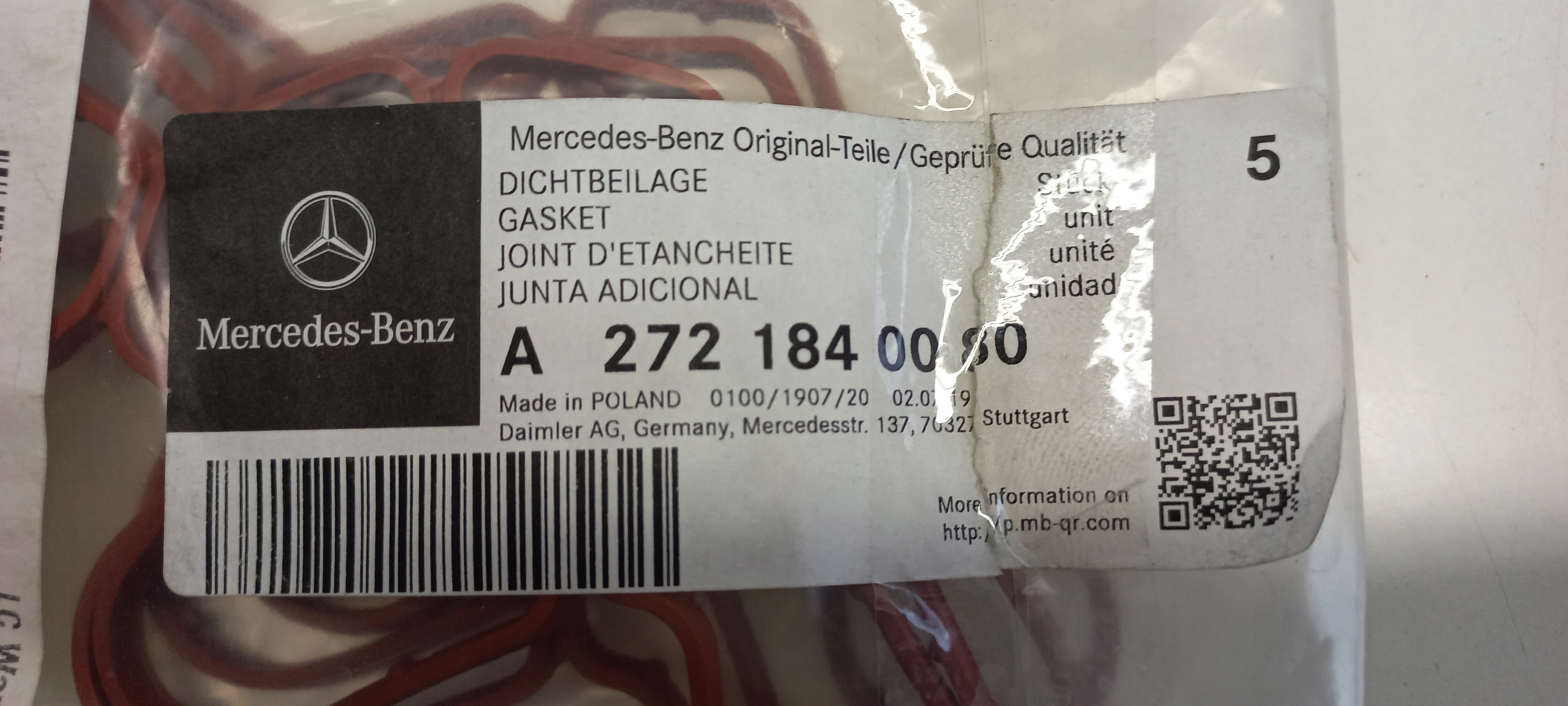 Чи є гарантія на Прокладка , корпус фільтра оливи mercedes - benz a272 184 0080?