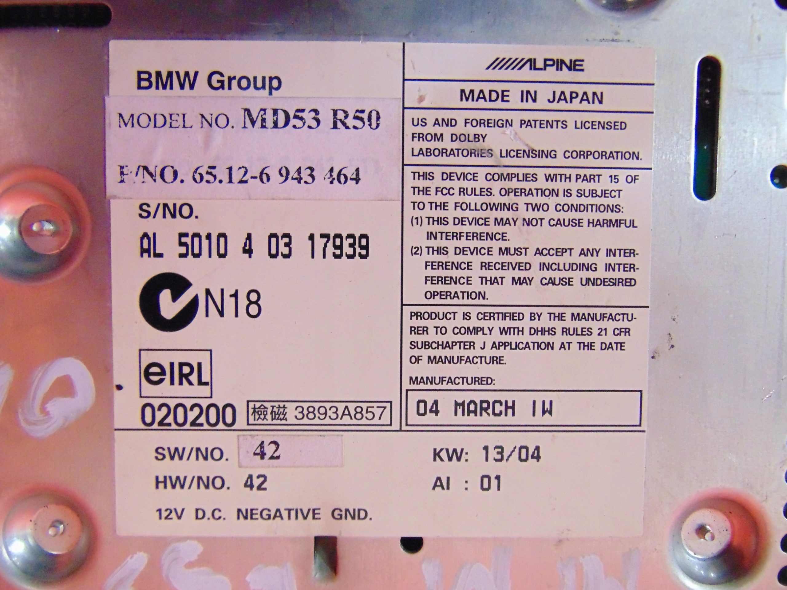 | Виробник запчастини: | alpine |