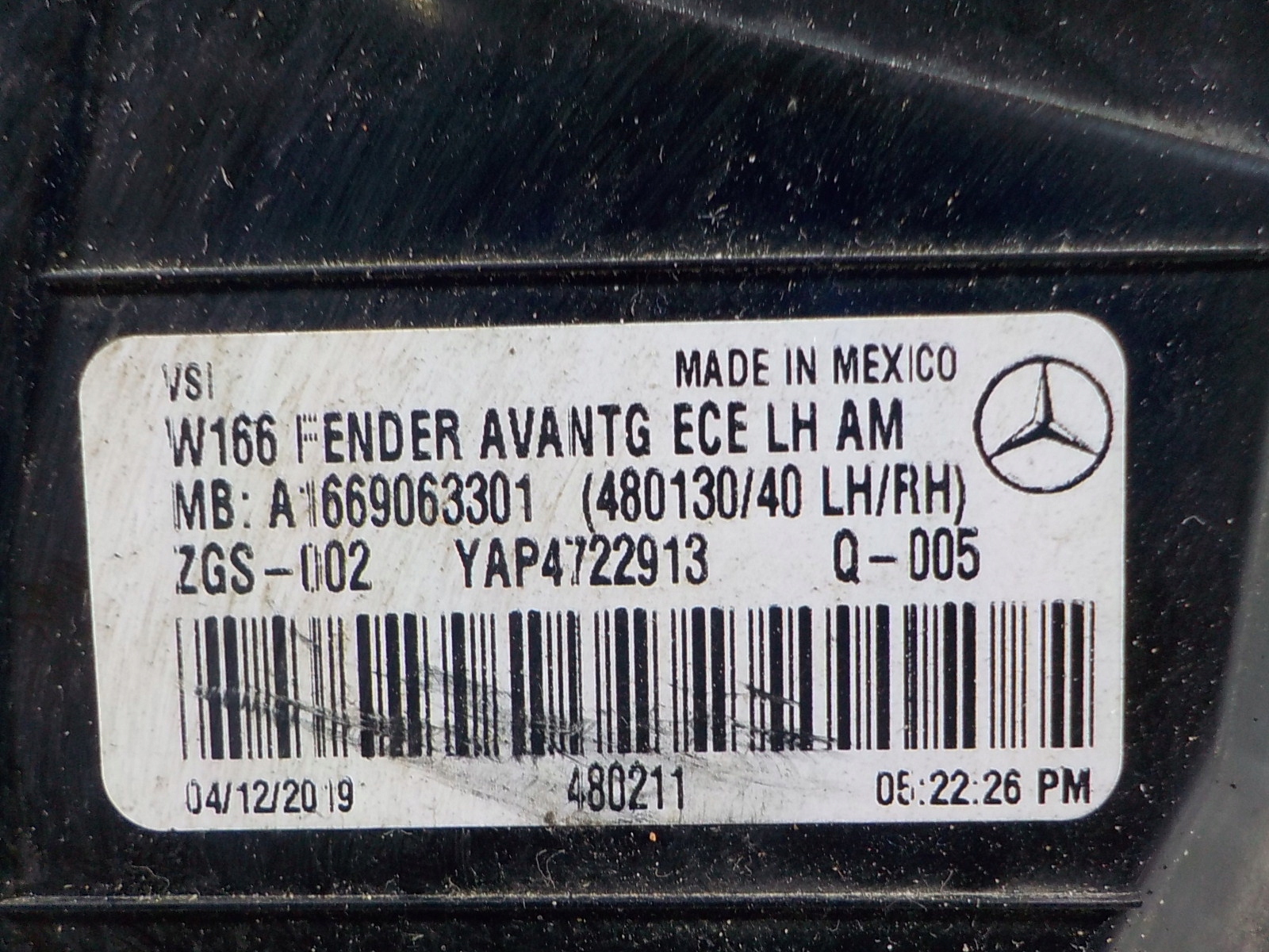 | Каталожний номер деталі: | A1669063301 |