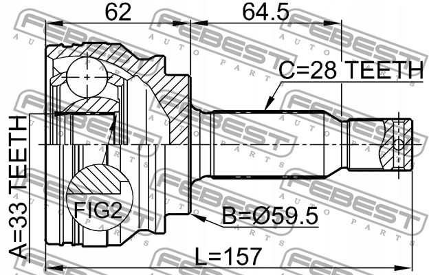 Шарнір зовнішній 33x59.5x28 febest 0410-cy34