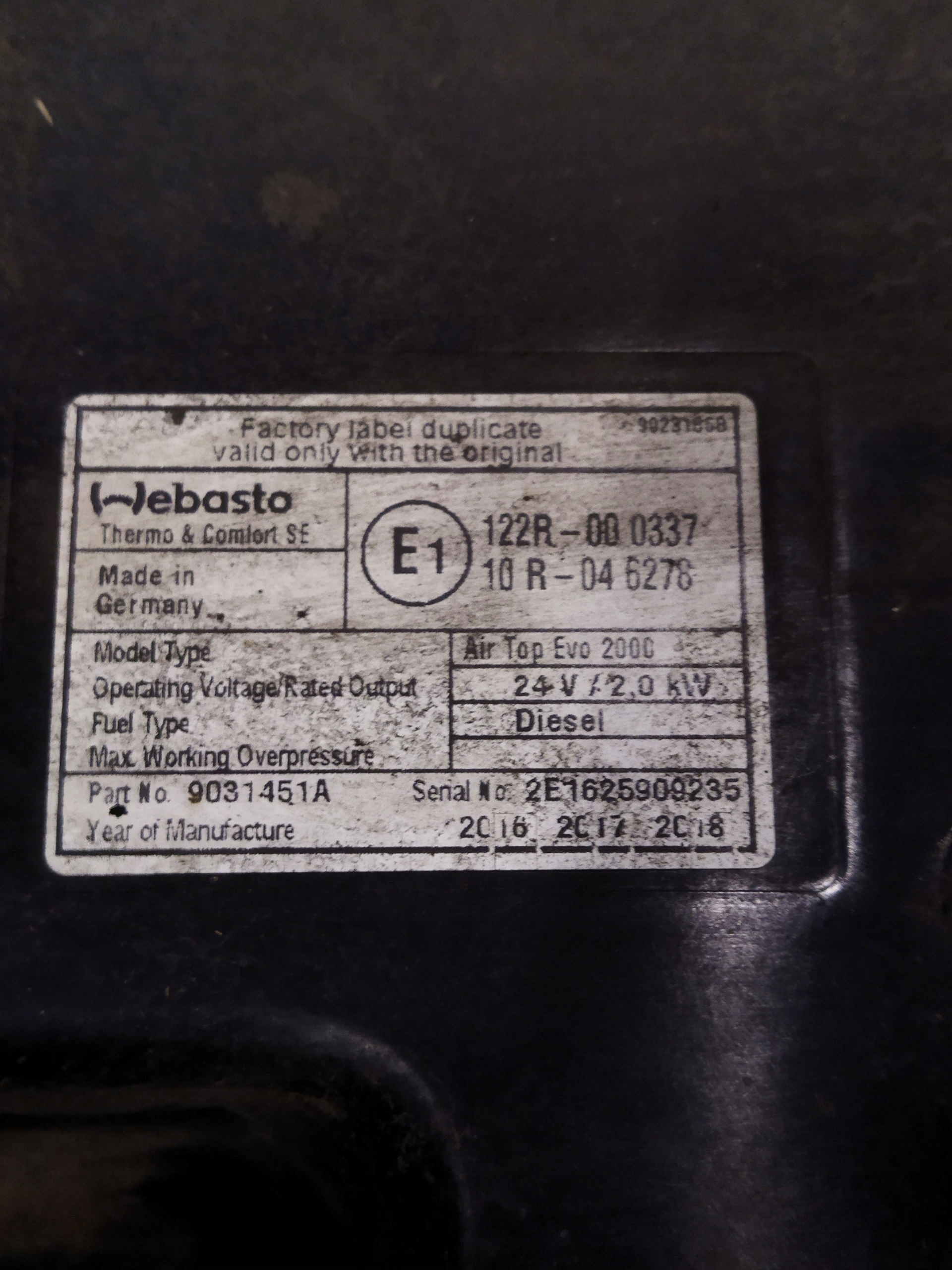 | Виробник запчастини: | webasto |