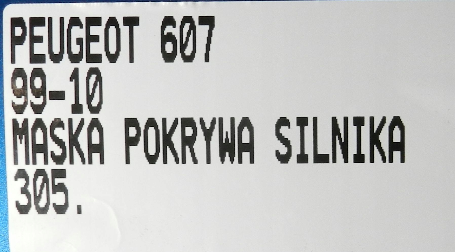Каталожний номер деталі: 305.MASKA, POKRYWA, SILNIKA, PEUGEOT, 607, 99-10