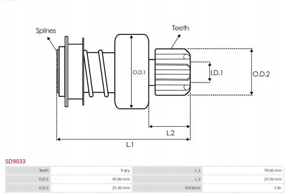 Зчеплення односторонній, стартер as-pl sd9033