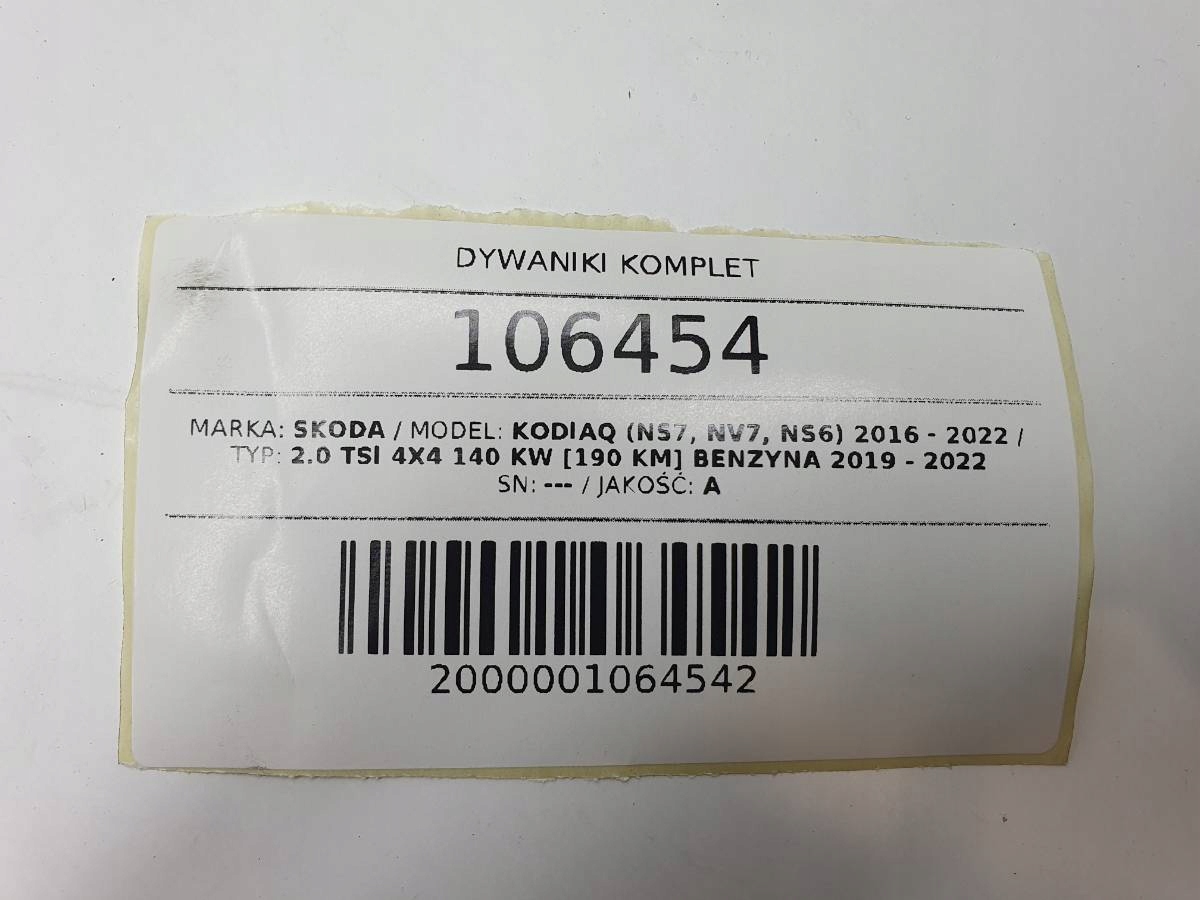 Килимки комплект оригінал skoda kodiaq 2021 europa