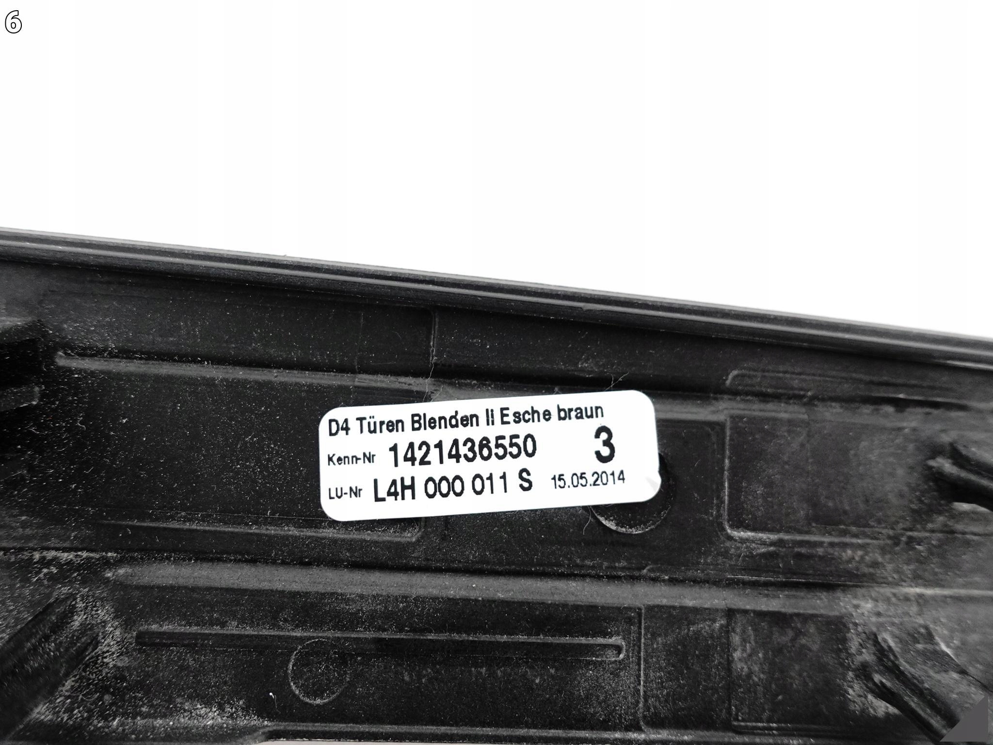 | Оригінальний каталожний номер: | 4H0 867 409 4H0.867.409 4H0867409D D, GH2 LISTWA DRZWI W DEKORACYJNA DREWNO, PANEL TAPICERKA BOCZEK LIFT PO LIFCIE, FACELIFT LIFTING LIFTINGU LISTEWKA, NAKŁADKA DOKŁADKA OSŁONA POSZERZENIE, BLENDA 2009 09 2010 10 2011 11 2012 12, 2013 13 2014 14 2015 15 2016 16 2017 17, LEWA LEWY LEWE LEWO PRZÓD PRZEDNIE, PRZEDNI PRZEDNIA 4H0867409 NAKLADKA, DOKLADKA OSLONA PRZOD |