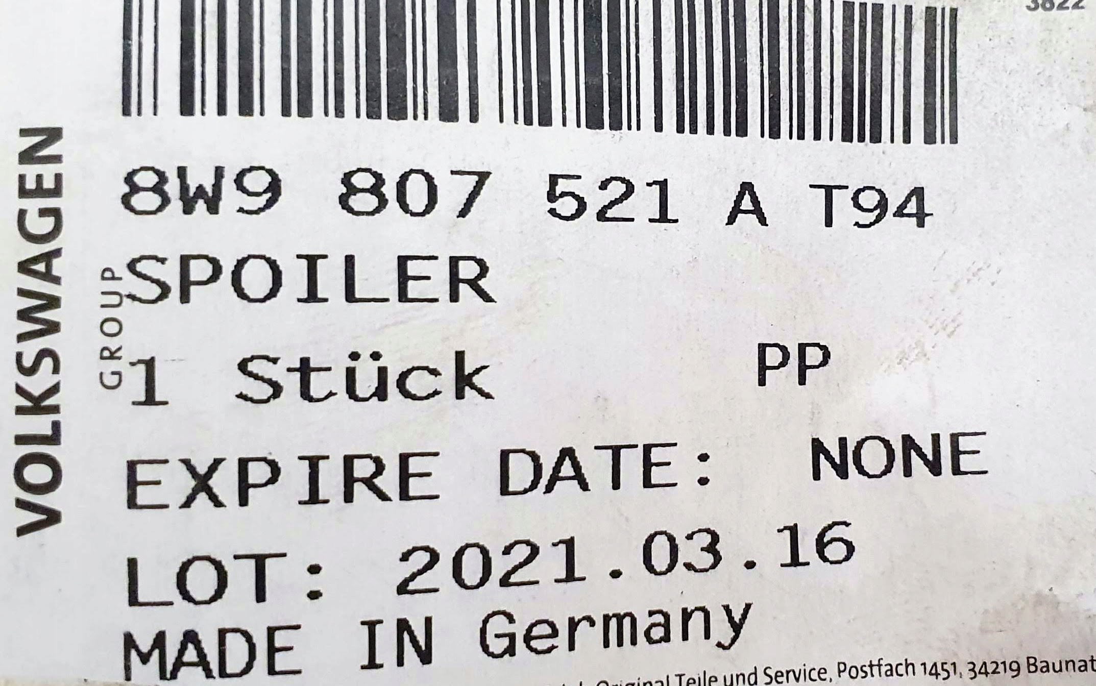 Чи є гарантія на Audi rs4 b9 спойлер дифузор задня новий оригінальний оригінальний номер 8w9807521a?