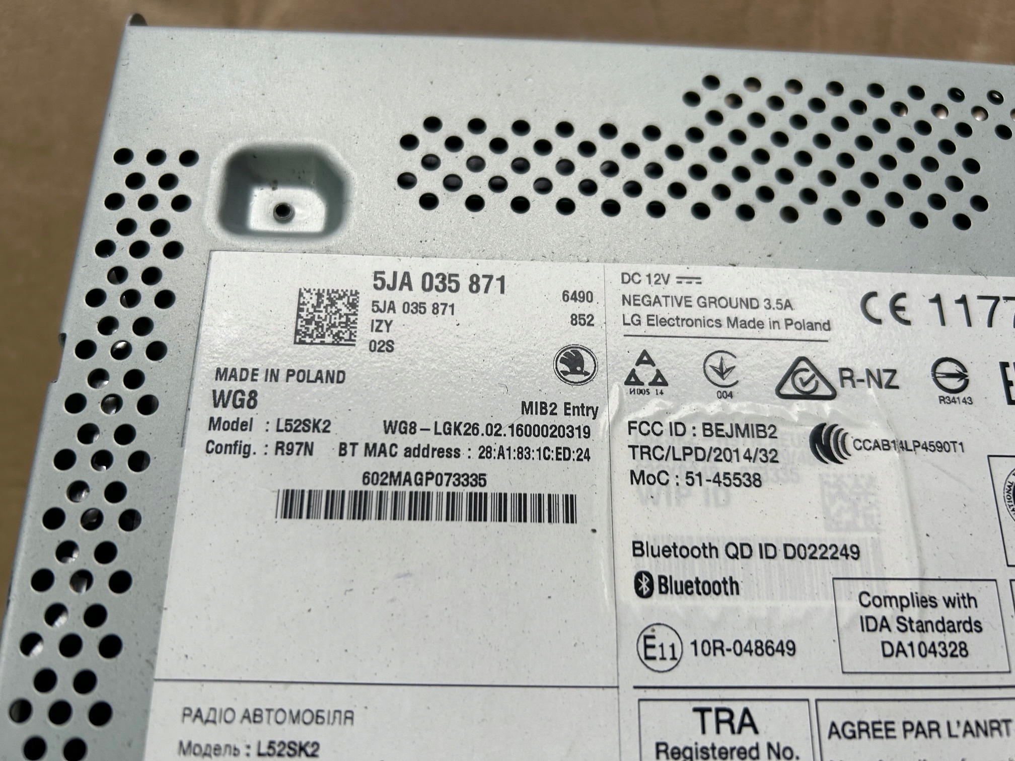 Skoda rapid 5ja lift 16r. радіо 5ja035871