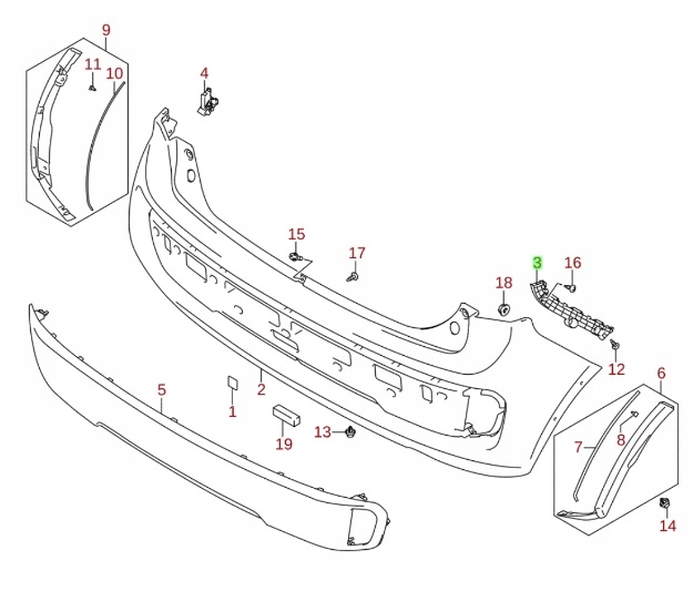 Suzuki ignis iii 2017-ślizg бампера задня правий