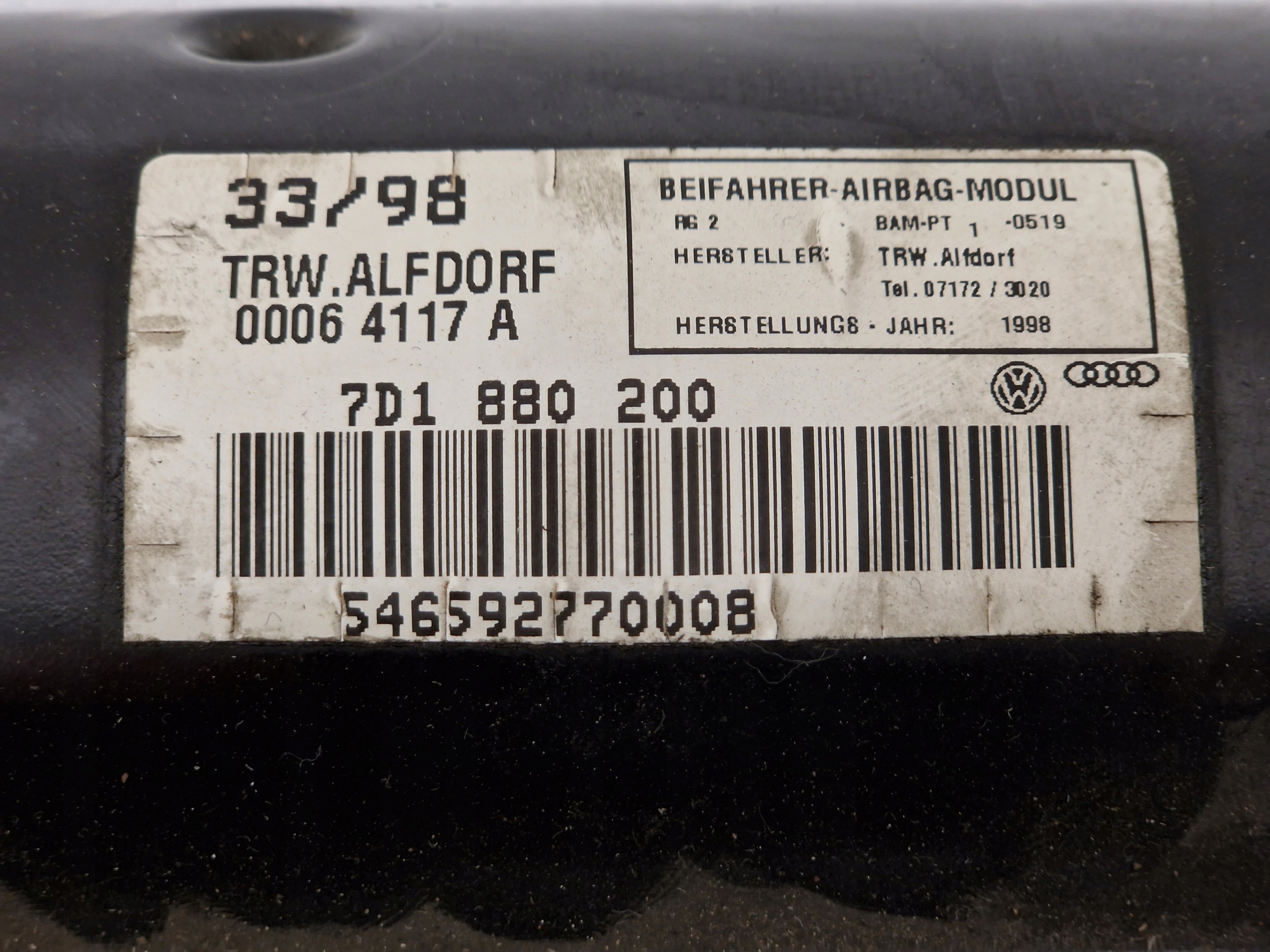 Каталожний номер деталі: VW T4 MULTIVAN PODUSZKA POWIETRZNA AIRBAG PRAWA MIĘKKA DESKA PASAŻER 7D1880200 1A