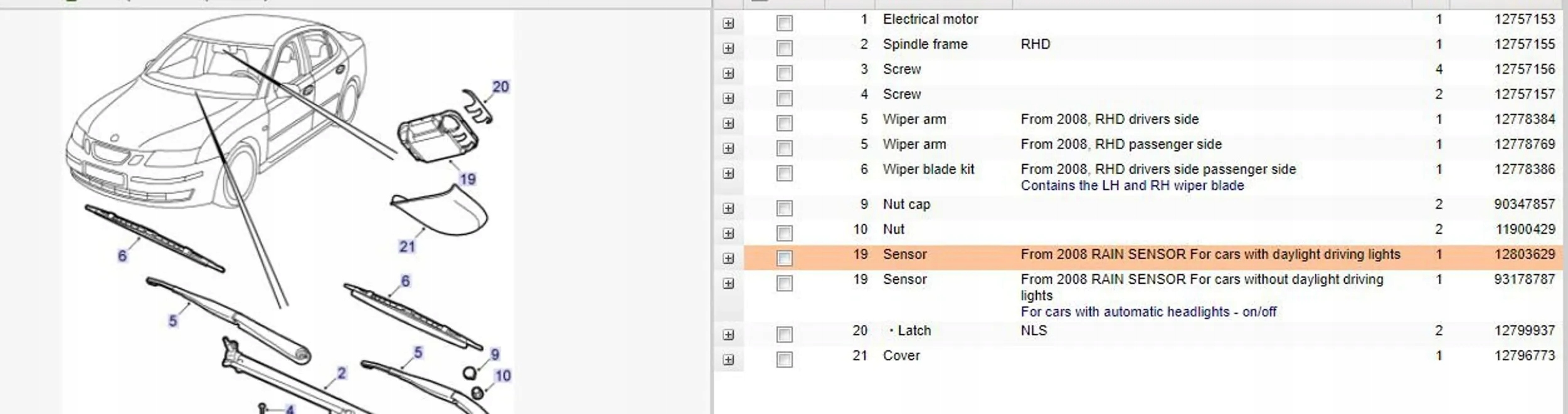Saab 9-3 ver2 2008 датчики дощу