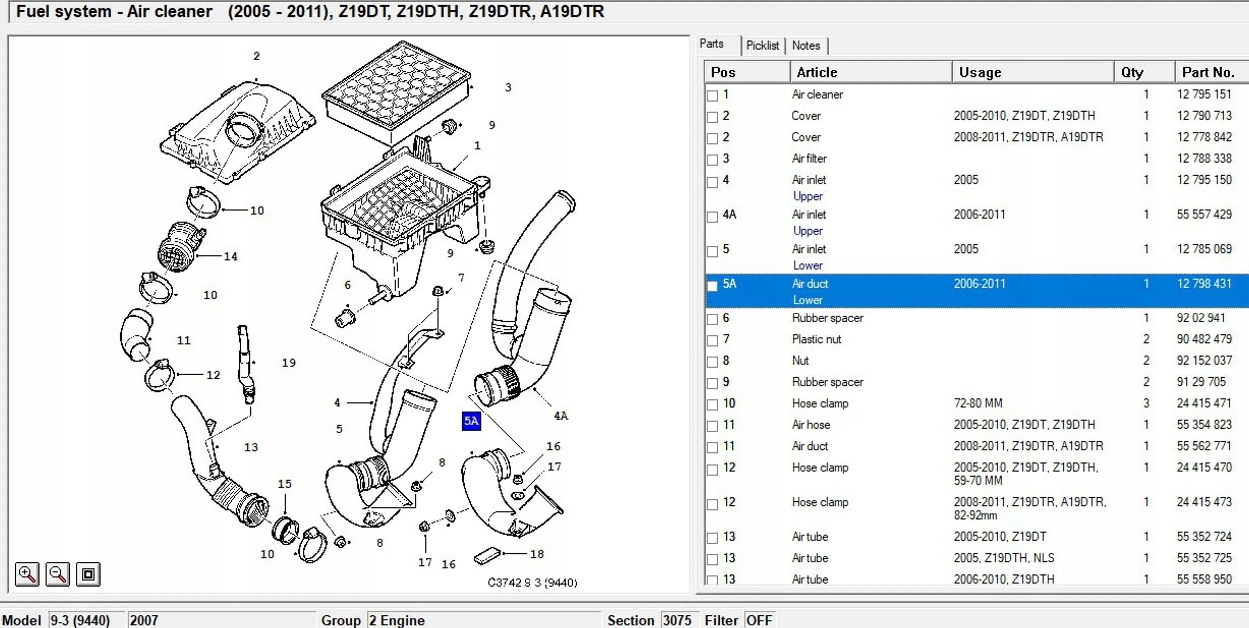 Saab 9-3 ver2 2007 канали повітря