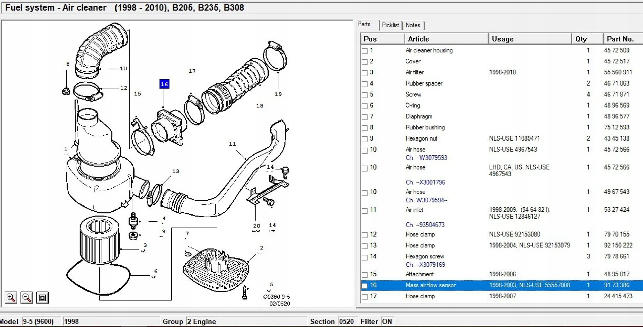 Saab 9-5 2002 витратомір