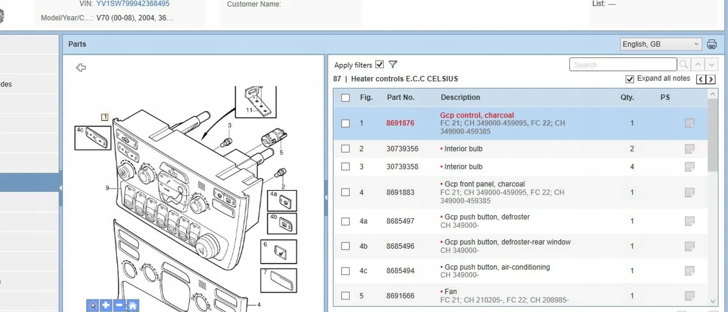 Volvo v70 2005 панелі керування, перемикачі