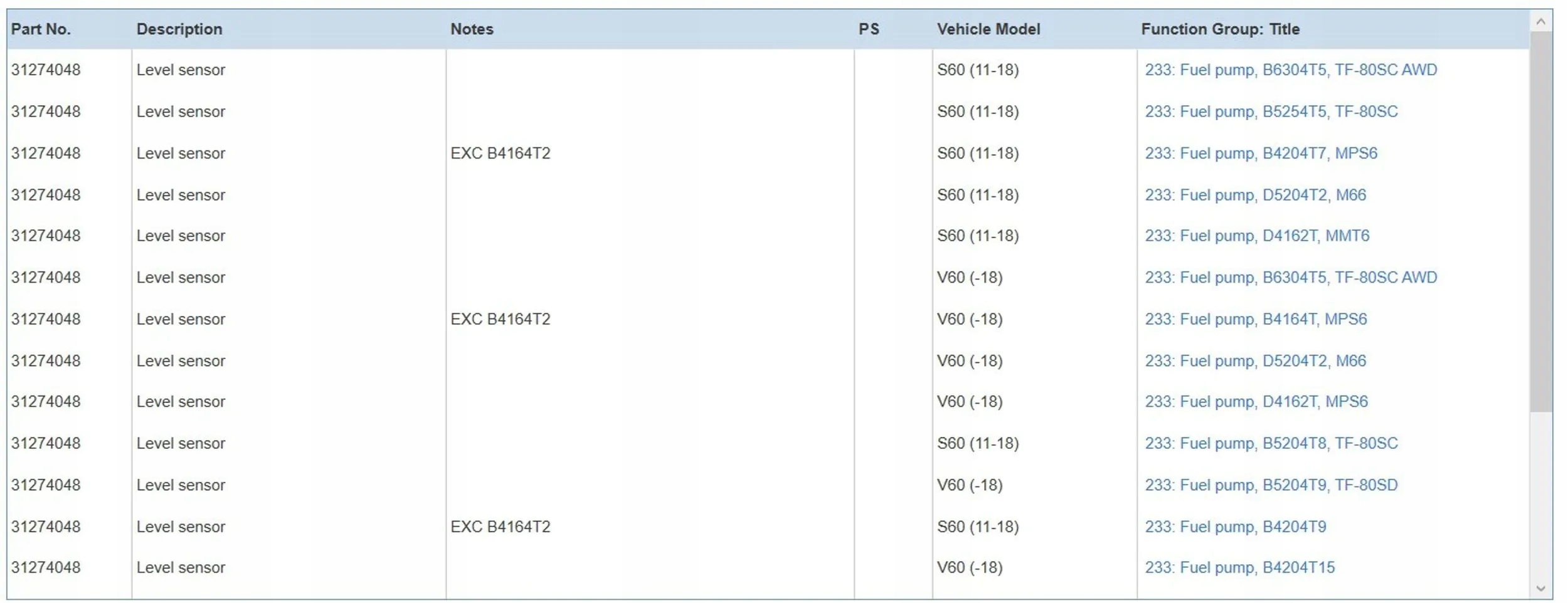 | Каталожний номер деталі: | 31274048 |