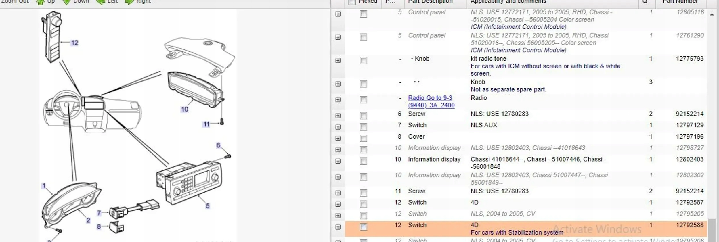 Saab 9-3 ver2 2004 панелі керування, перемикачі