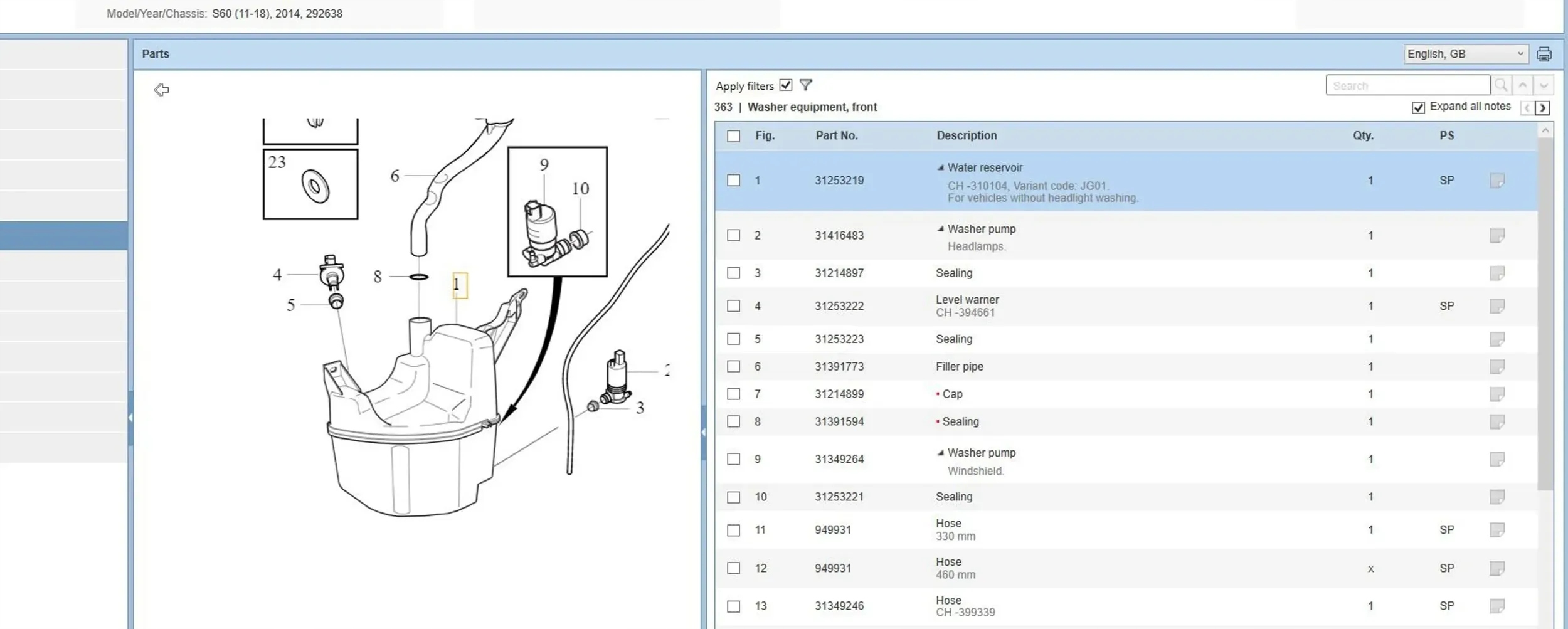 | Каталожний номер деталі: | 31416283 |