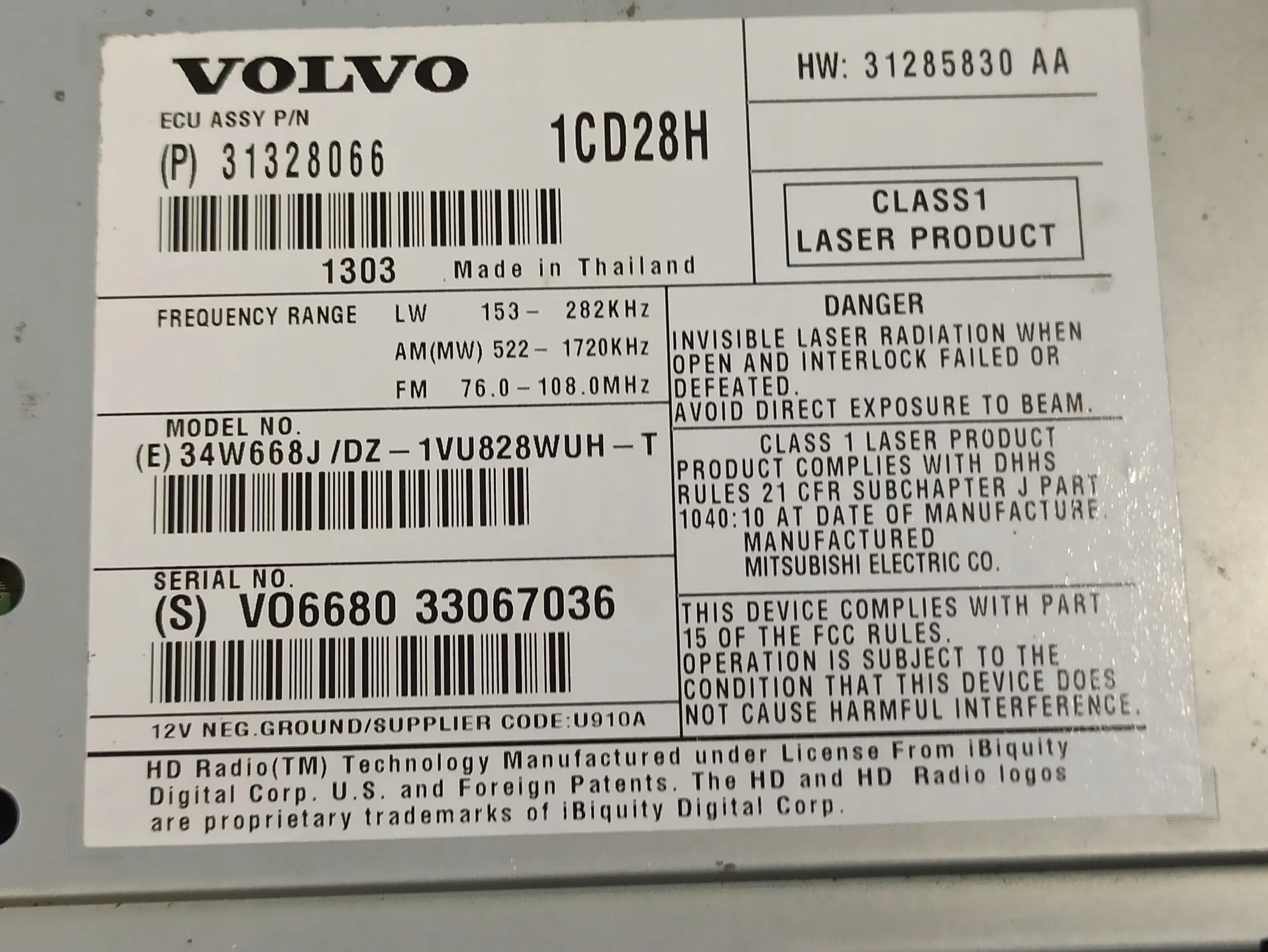 | Каталожний номер деталі: | 31328066 |